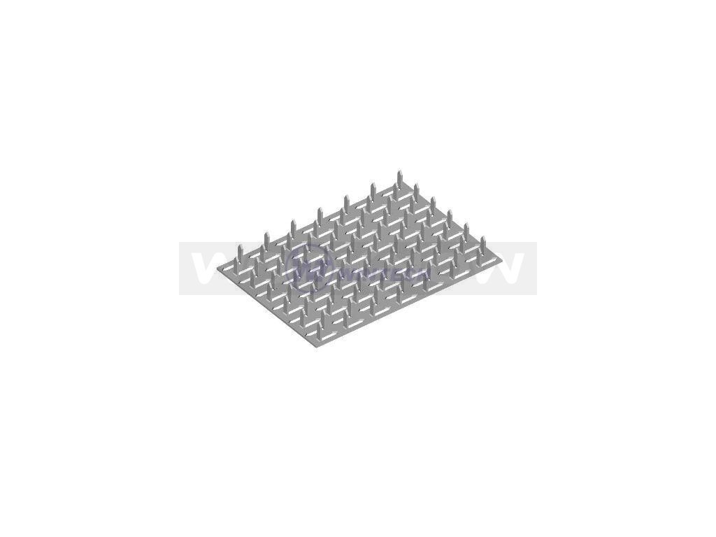 Statická styčníková deska s prolisovanými trny, vyrobená z ocelového plechu žárově pozinkovaného jakosti S280GD+Z275, tloušťka materiálu 1,5mm.