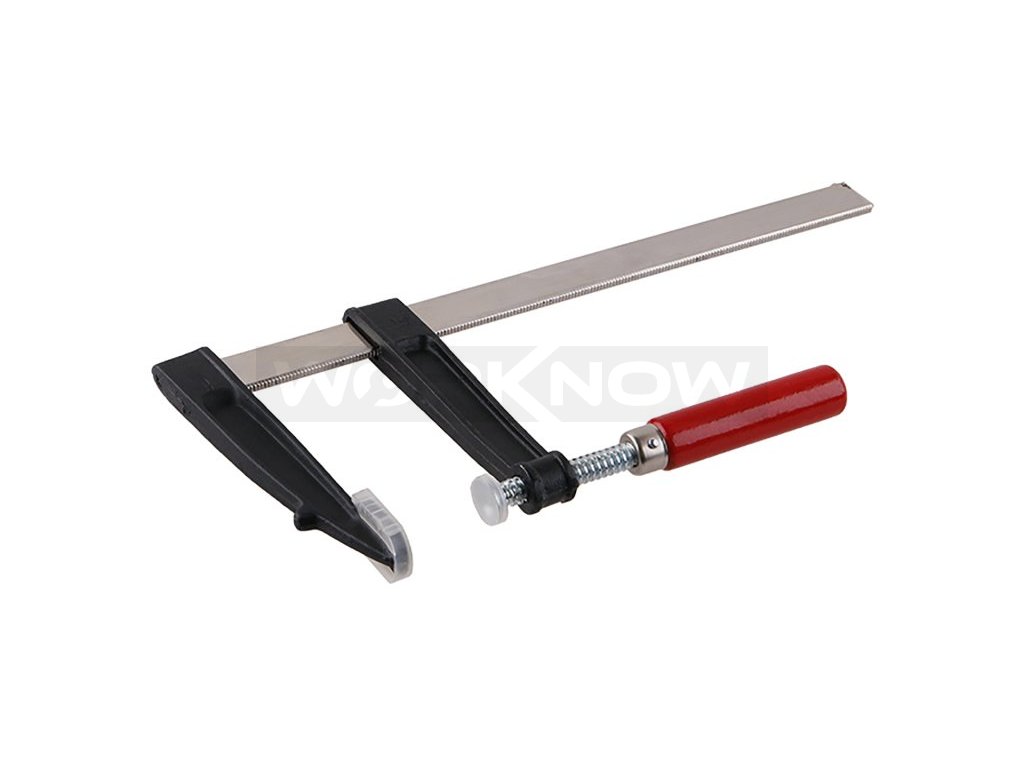 Rychloupínací svěrka s nylonovými rameny, pákový rychloupínací mechanismus se zubovou pojistkou, pohyblivá čelist pro přesné přizpůsobení tvaru svíraného materiálu, konstrukce svěrky umožňuje rychlou úpravou ramen ji použít jako rozpěrku, pro profesionální stolařské, truhlářské, dílenské práce.