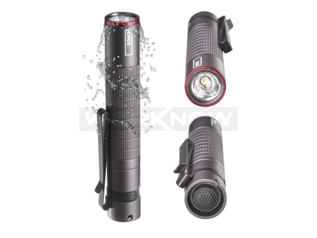 Svítilna je vyrobena tak, aby byla malá, lehká a praktická. Je proto vybavena snímatelným klipem, díky kterému ji snadno uchytíte za opasek. Nechybí ani poutko pro pověšení svítilny na háček či bezpečnou manipulaci, když ji právě používáte.