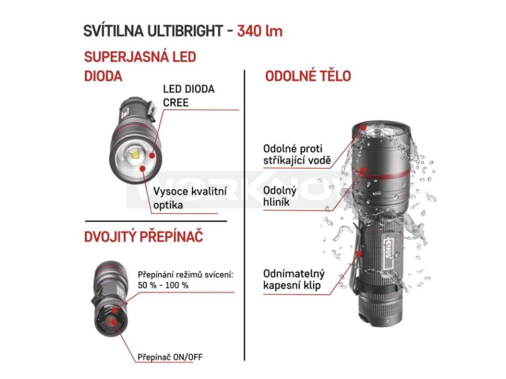 Kompaktní svítilna Ultibright 70 je praktickým doplňkem pro každou činnost, při které si potřebujete pohotově posvítit. O dostatečný dosvit až 200 metrů a světelný tok 340 lm se stará kvalitní LED chip CREE XP-G2 S3.