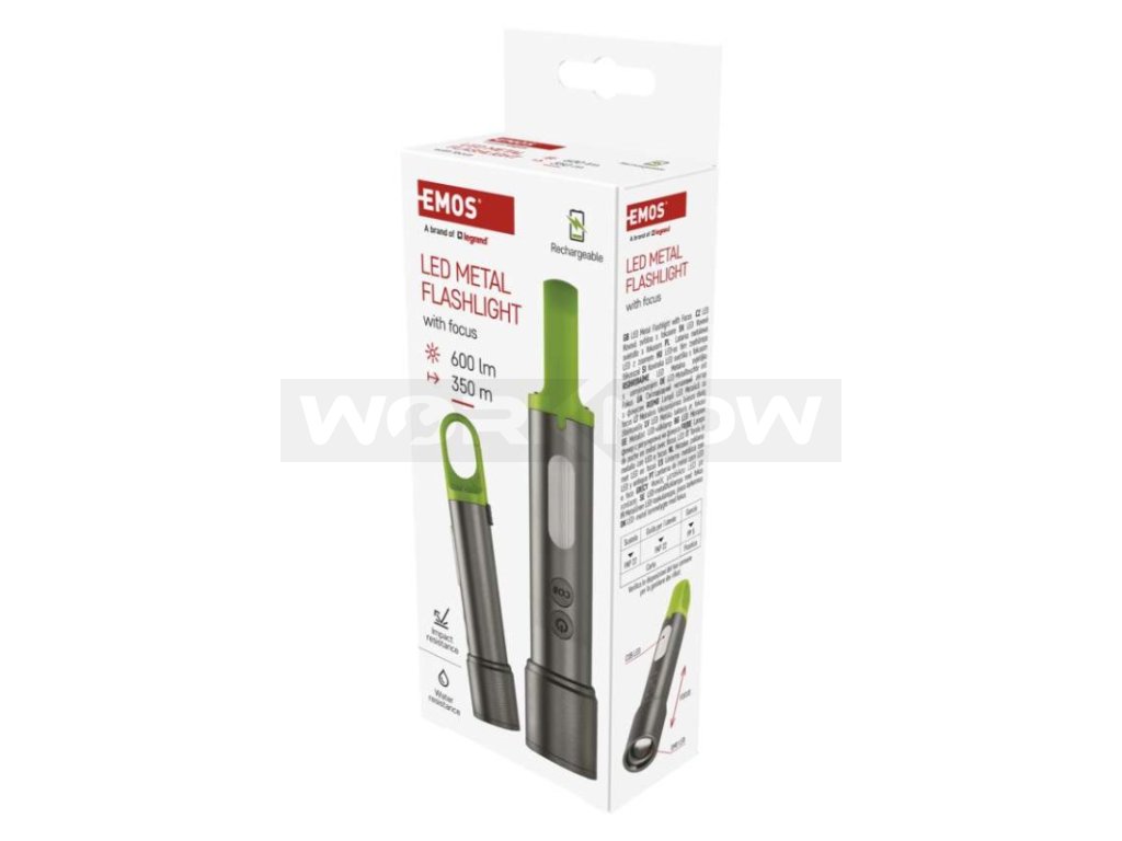 LED nabíjecí kovová svítilna, 600 lm, 1 200 mAh