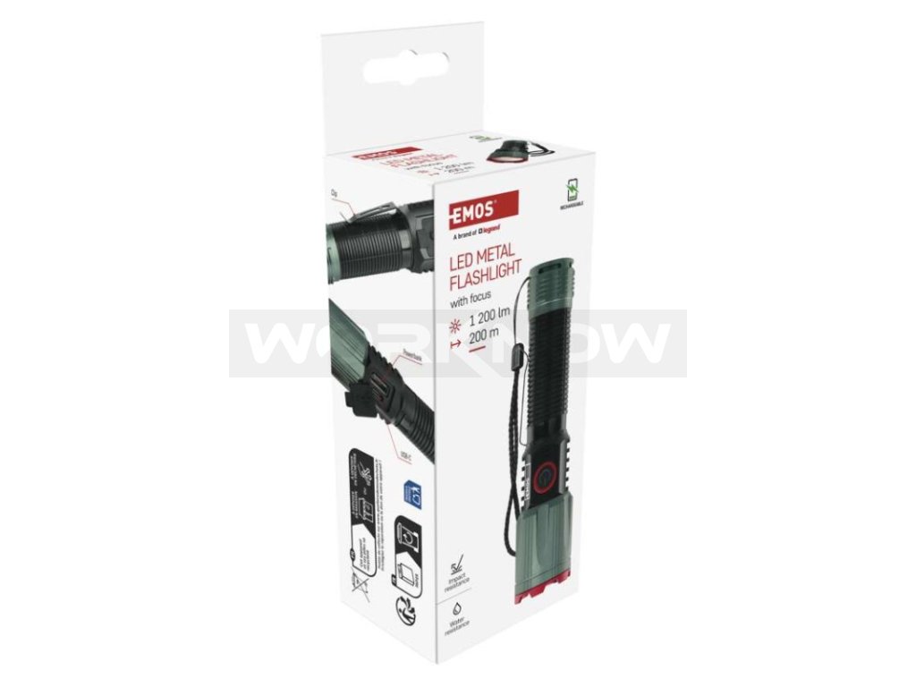 LED nabíjecí kovová svítilna 1200 lm, 2200 mAh
