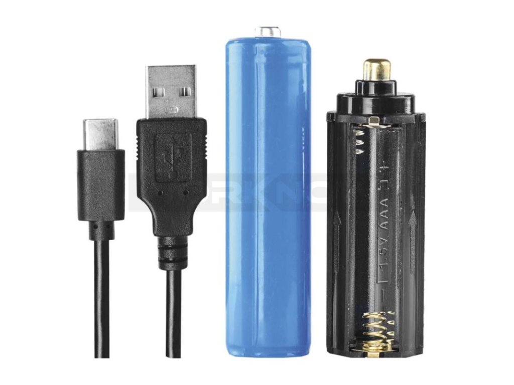 | Příslušenství: | Li-Ion baterie, držák na 3x AAA, USB-C Kabel, plastová krabice |