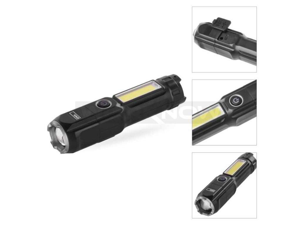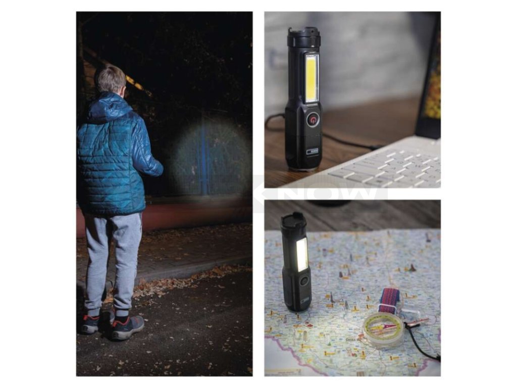 režimy svícení: LED 100 %, LED 50 %, LED – blikání, COB LED 100 %