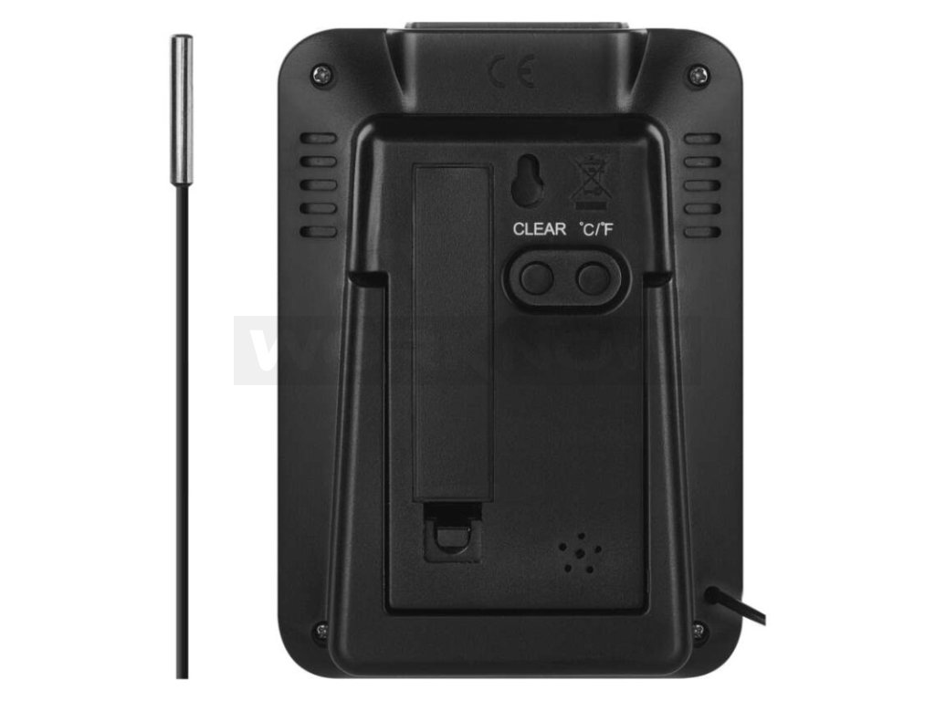 S měřením venkovních teplot vám pomůže drátové čidlo, které je 3 metry dlouhé. Bez problému ho tedy umístíte za okno a teploměr pak pohodlně postavíte k oknu či pověsíte na zeď.