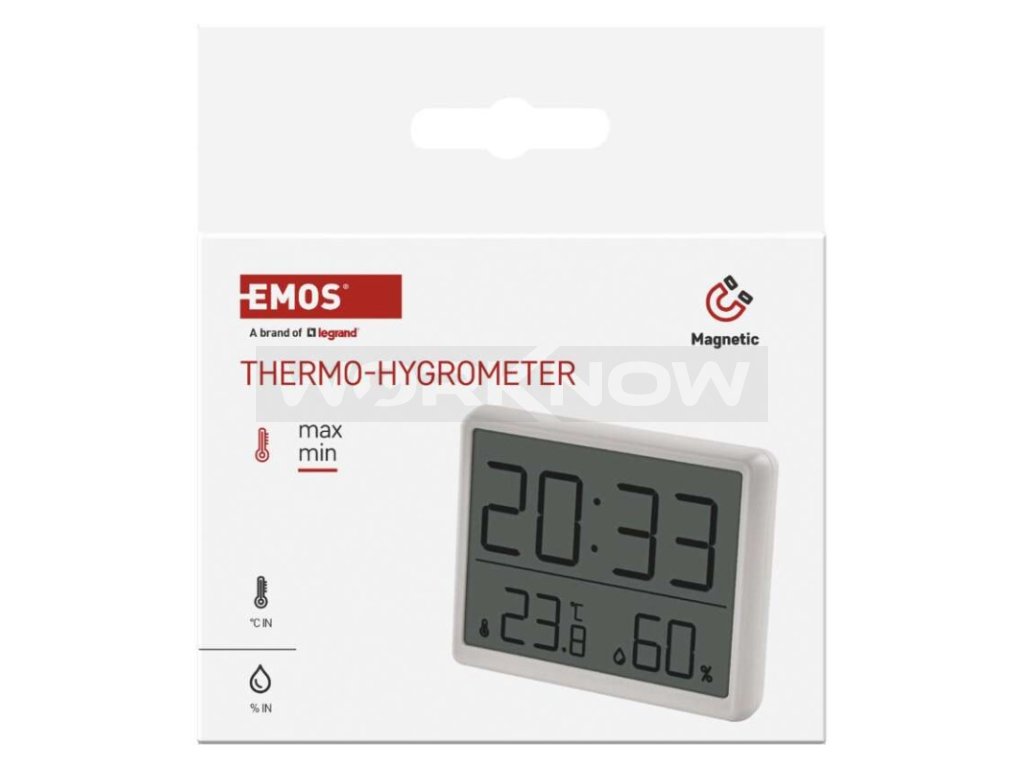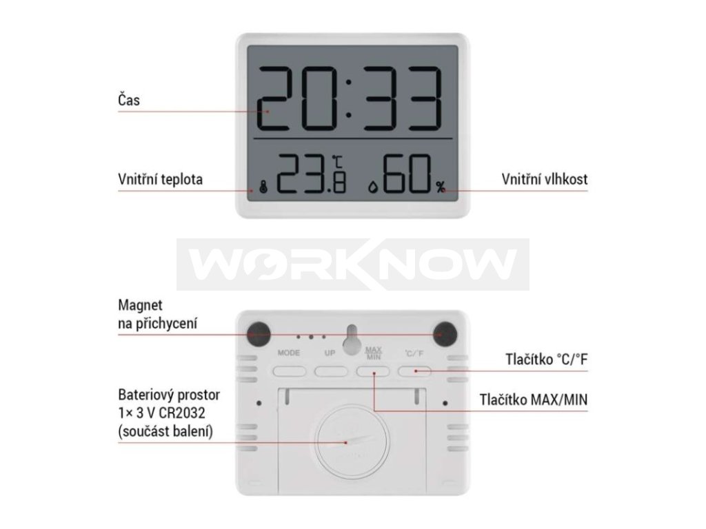 Nabízí komplexní řešení pro měření vnitřní teploty a vlhkosti. S hodinami, datem a zobrazením min/max teploty budete mít přehled o všem. Lze snadno přepínat mezi jednotkami °C/°F a využít můžete i praktickou funkci budíku. Velký přehledný LCD displej s nadstandardně velkým zobrazením času zajišťuje skvělou čitelnost.