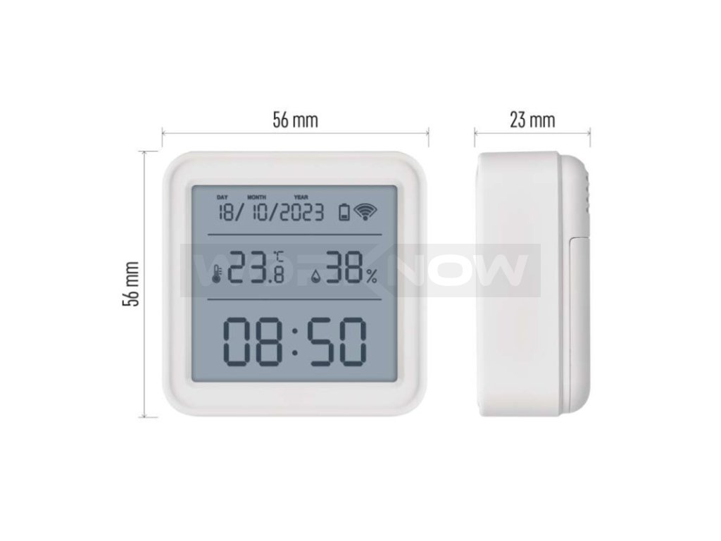 Kompaktní design. Podsvícený diplej. Zobrazení času a data. Měření teploty a vlhkosti. Alarm teploty a vlhkosti. Záznam historie dat. Signalizace slabé baterie.