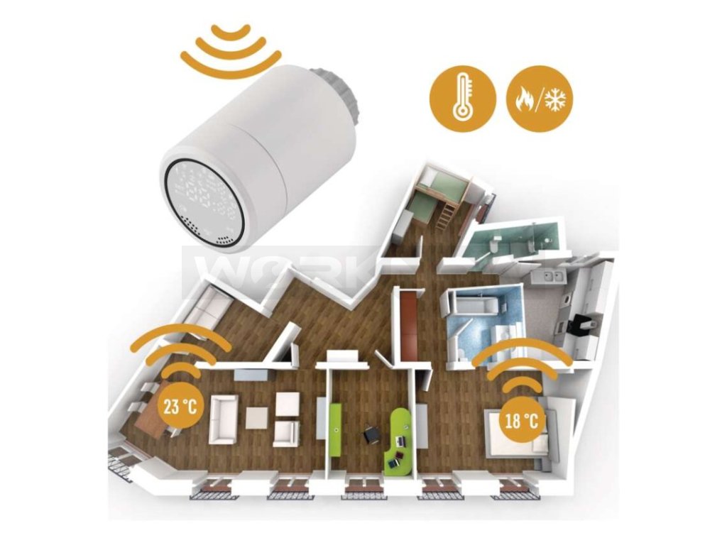 Digitální termostatická hlavice pro regulaci vytápěcího systému. Hlavice reguluje otopné těleso pomocí nastavených programů. Hlavice rozpozná otevřené okno a má dětskou pojistku.