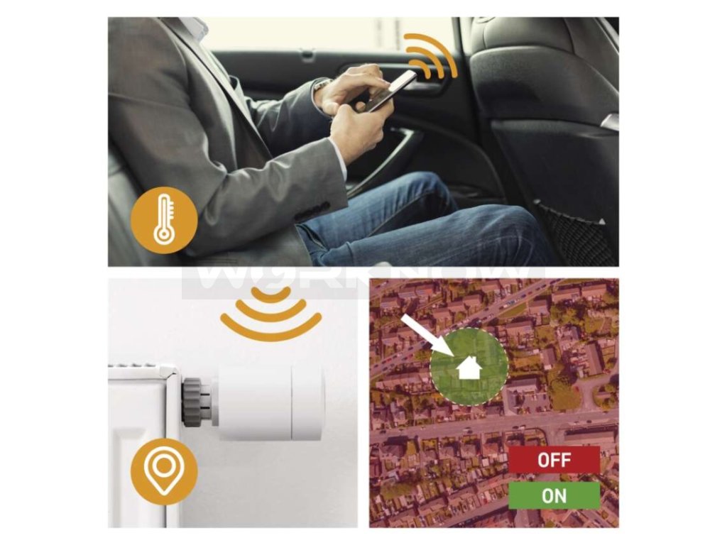 Chytrá termostatická hlavice P5630S sleduje polohu vašeho mobilního zařízení a na základě GPS dokáže regulovat teplotu, pokud se zrovna nacházíte v blízkosti vašeho domova. Při odchodu naopak teplotu ztlumí a vy tak máte minimum starostí. Řekněte stop drahému a nepříjemnému přetápění!