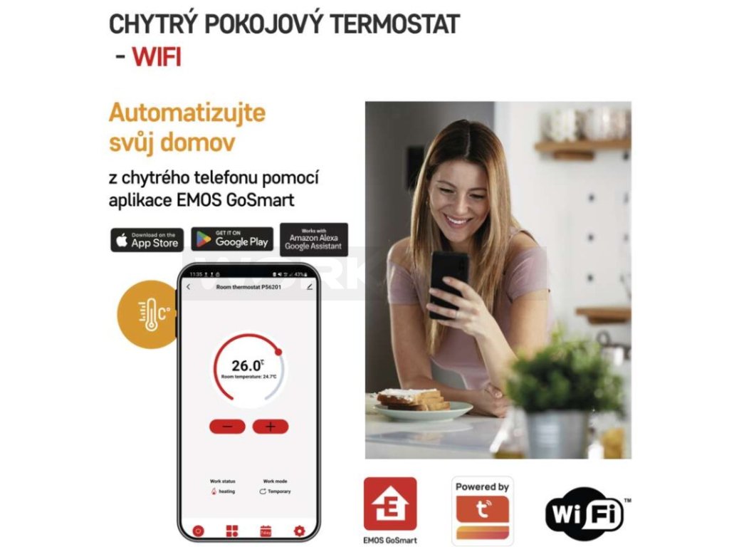 Poté stačí zařízení připojit k vaší domácí Wi-Fi síti a spárovat s plně jazykově lokalizovanou mobilní aplikací EMOS GoSmart, která je dostupná pro Android i iOS. Díky kompatibilitě s Amazon Alexa a Google Assistant můžete využít i hlasového ovládání.