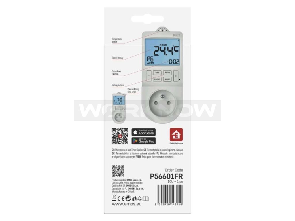 2 v 1 produkt - Zásuvkový termostat s funkcí digitální spínací zásuvky. Verze zásuvky FRENCH.