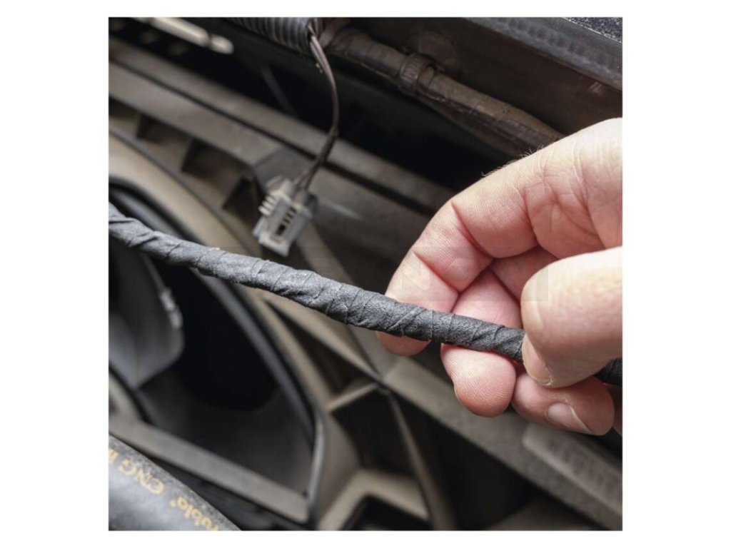 Asfaltová textilní páska s délkou návinu 10 m a šířkou 19 mm vám bude nápomocná za každé situace. Ať už k ochraně kabelů nebo k opravám poškozené izolace plášťů kabelů a vodičů v interiéru či exteriéru automobilu.