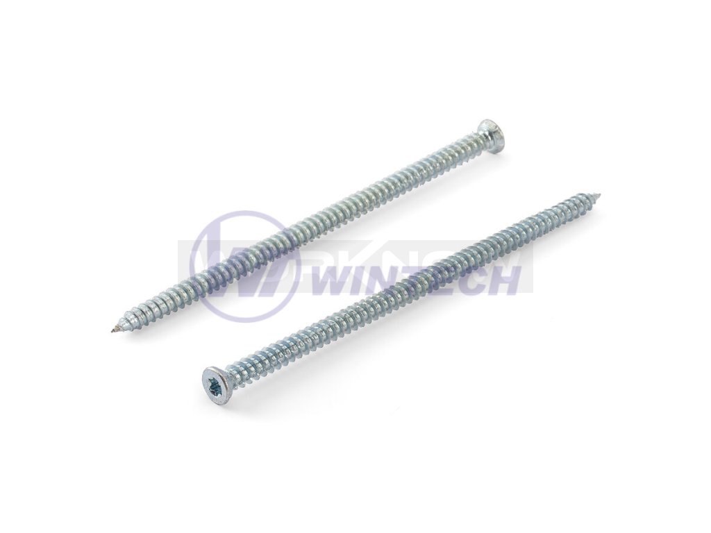 Kotevní šrouby s plochou hlavou pro montáž okenních rámů do všech typů zdiva a betonu. Konstrukce šroubu je navržena pro velmi snadné a rychlé zašroubování a dokonalou fixaci rámu ke zdivu. Torx drážka zajišťuje kvalitní přenos vysokého kroutícího momentu při aplikaci.