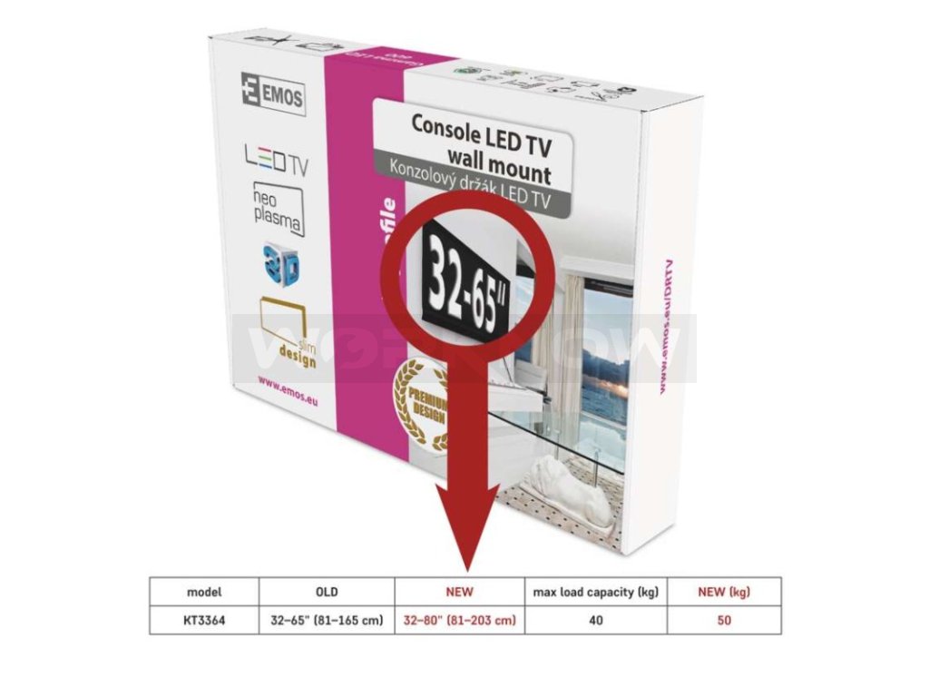Vážení zákazníci, upravili jsme technické parametry našeho držáku na TV, ale obdržíte jej ve starém balení, které nese ještě staré označení parametrů. Nemusíte se obávat, držák splňuje všechny požadované specifikace. Krabice se zatím neaktualizují, ale můžete se spolehnout, že produkt uvnitř odpovídá objednaným rozměrům a vašim potřebám.
