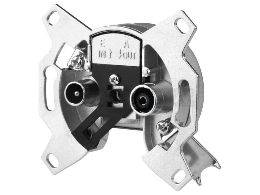 Účastnická zásuvka EU 3503 koncová s útlumem 3 dB a zdířkami pro TV + Rádio. Účastnická zásuvka propojuje např. anténu s televizí, satelitem, set-top-boxem, internetem nebo telefonem. Zásuvka není průchozí pro stejnosměrné napětí.