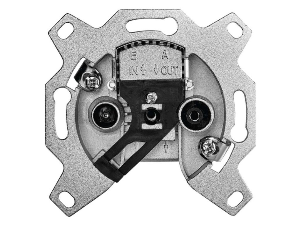 Účastnická zásuvka EU 3607 průběžná s odbočným útlumem 7 dB, průchozím útlumem 3 dB a zdířkami TV + rádio propojuje např. anténu s televizí, nebo set-top-boxem. Zásuvka není průchozí pro stejnosměrné napětí.