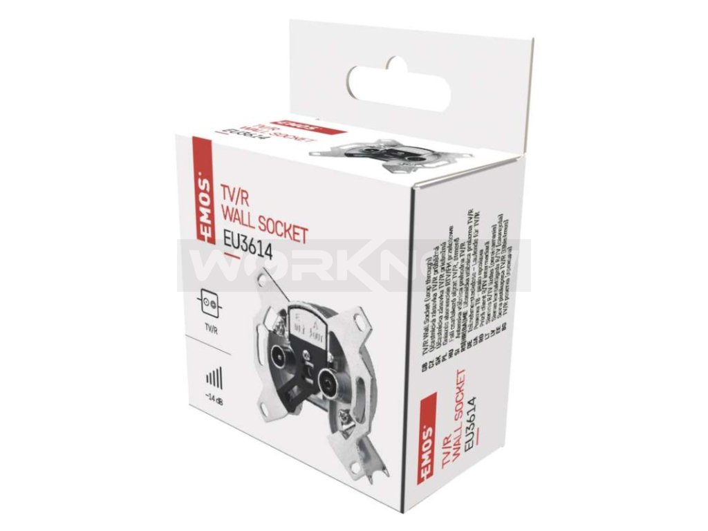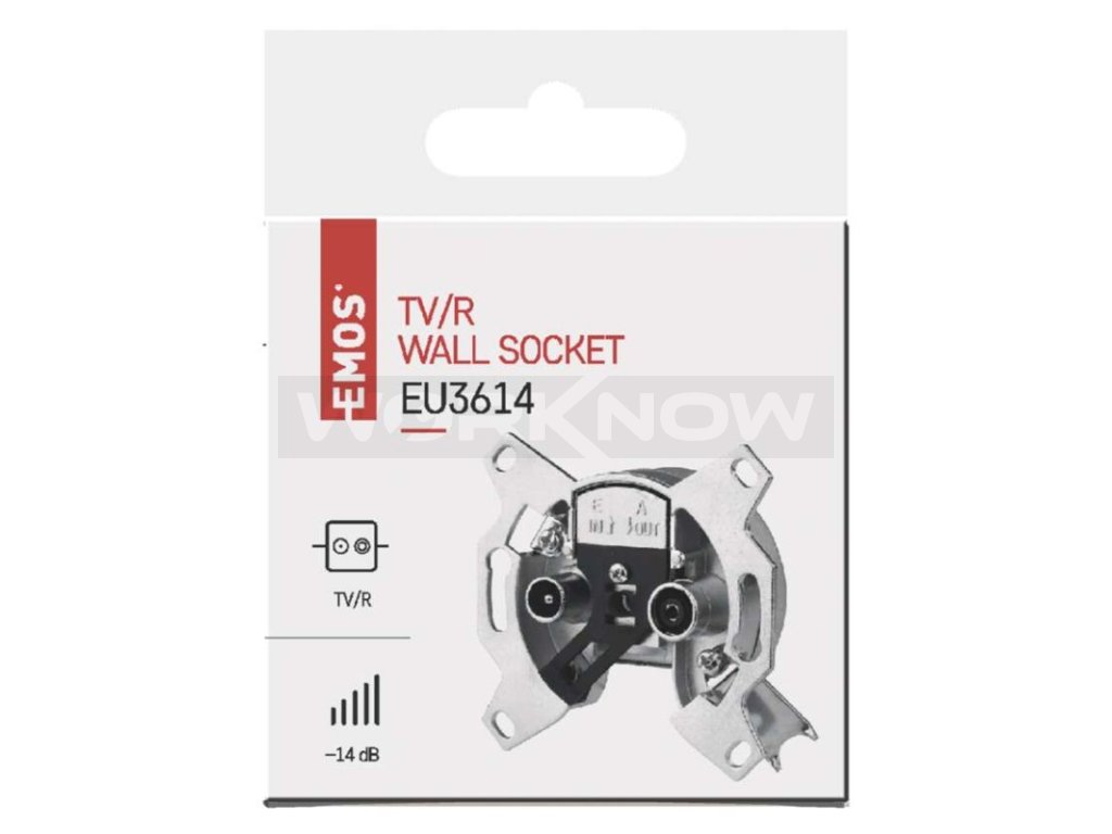 Účastnická zásuvka EU 3614 průběžná s odbočným útlumem 14 dB, průchozím útlumem 1,5 dB a zdířkami TV + R. Účastnická zásuvka propojuje např. anténu s televizí, nebo set-top-boxem. Zásuvka není průchozí pro stejnosměrné napětí