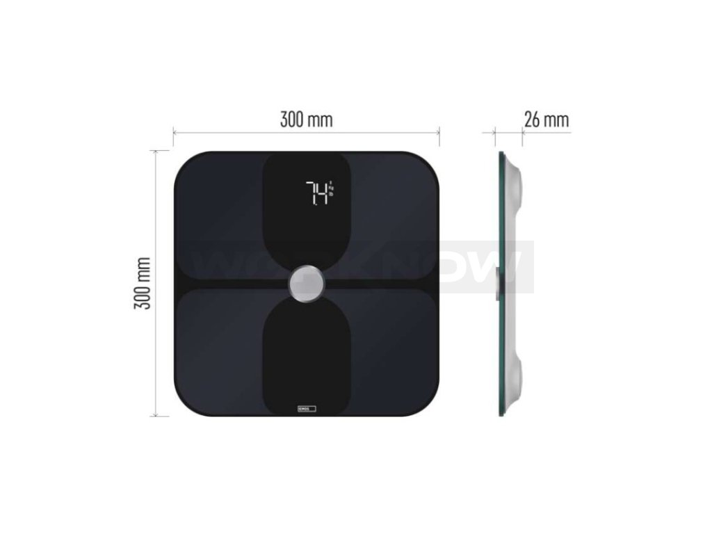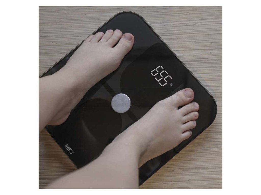 Digitální osobní váha s výpočtem BMI indexu (množství tuku, vody a svalové hmoty v těle). Kompatibilní s mobilní aplikací TUYA (iPhone, Android). Paměť pro 8 uživatelů.