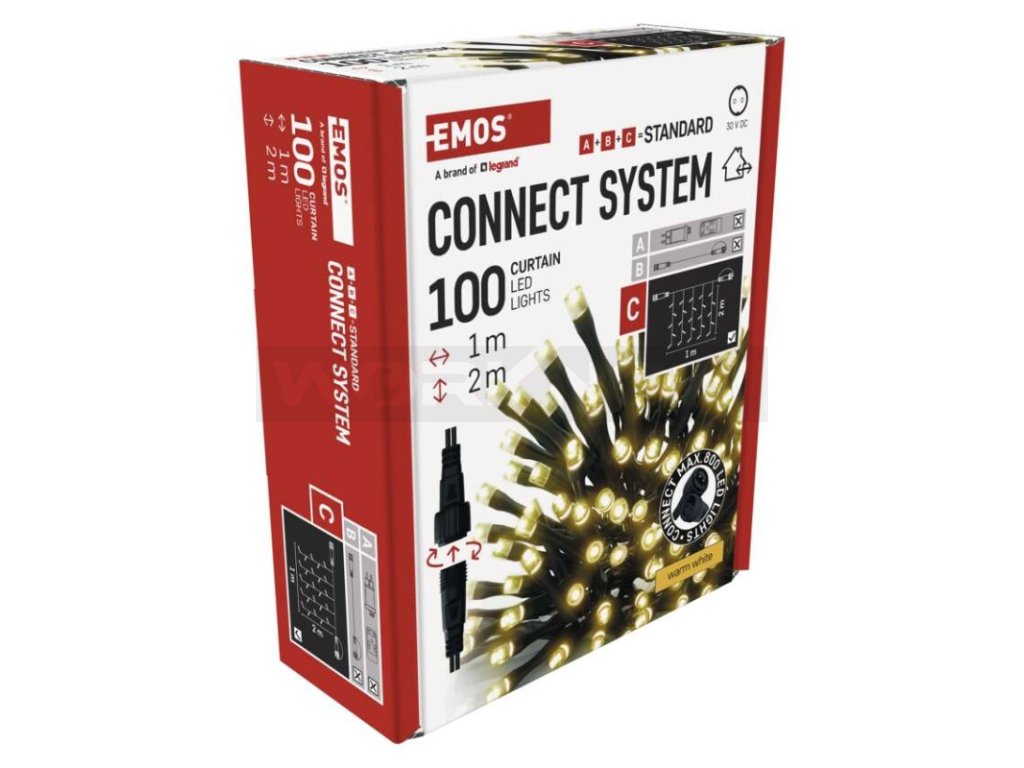Světelné LED záclony CONNECT SYSTEM STANDARD jsou dispozici v rozměru 1 × 2 m a obsahují 100 LED světýlek. Hledáte-li barvu, která bude nejlépe ladit s exteriérem či interiérem vašeho domu, můžete vybírat z teplé bílé nebo studené bílé.