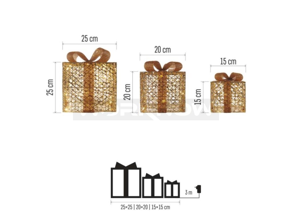 LED dárky, 3 velikosti, vnitřní, teplá bílá DCFC14