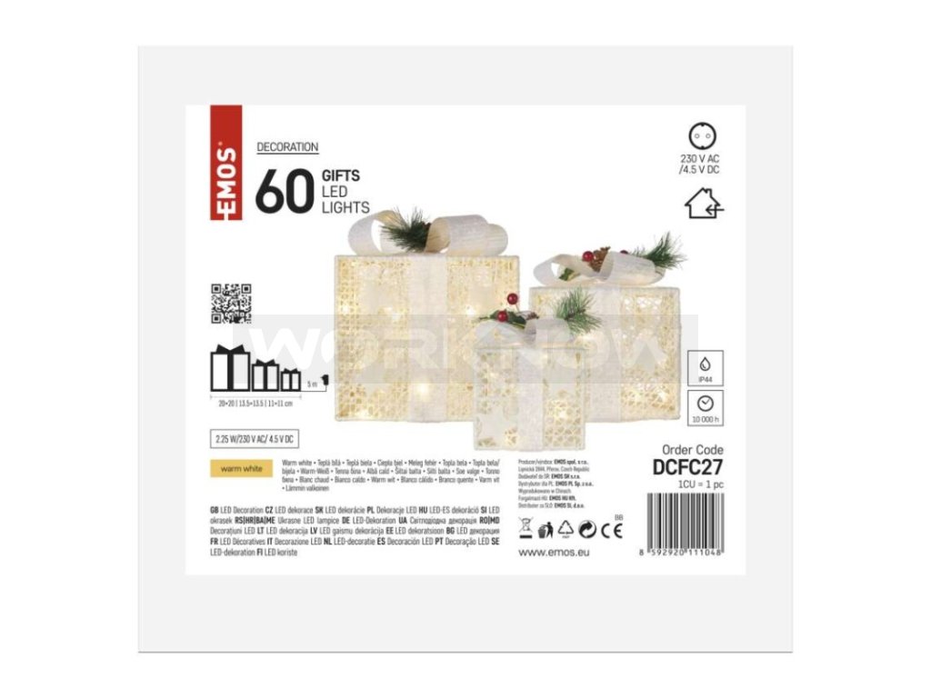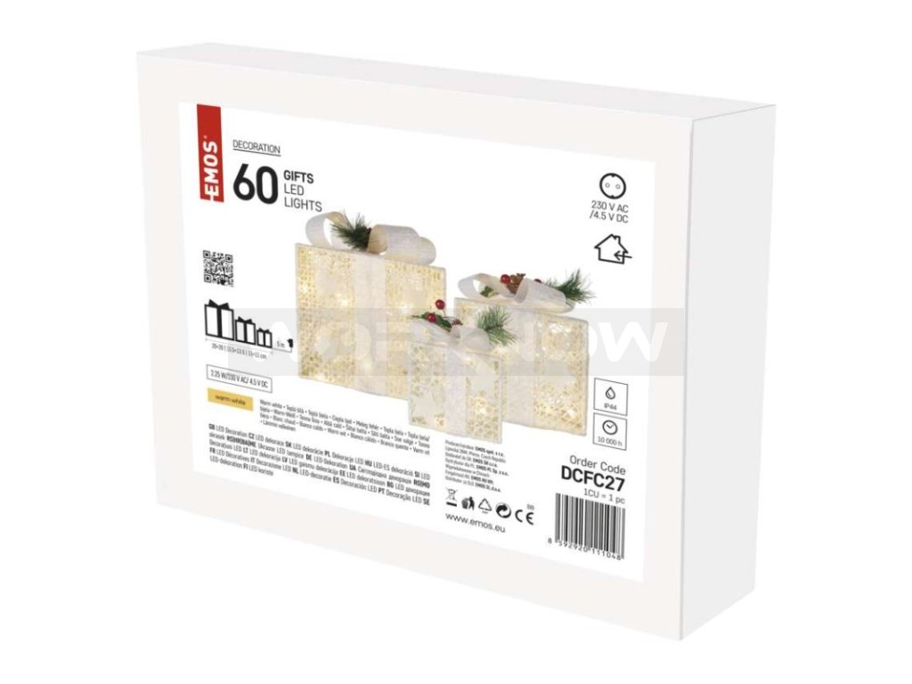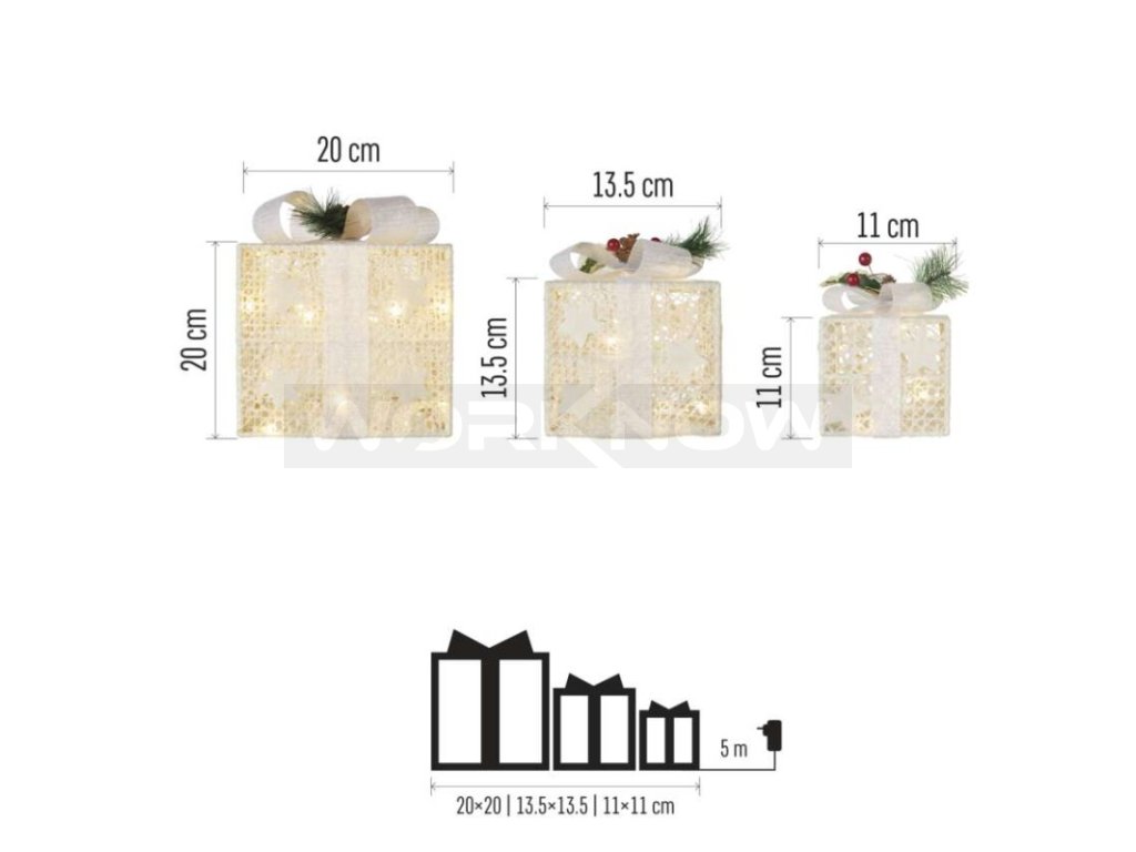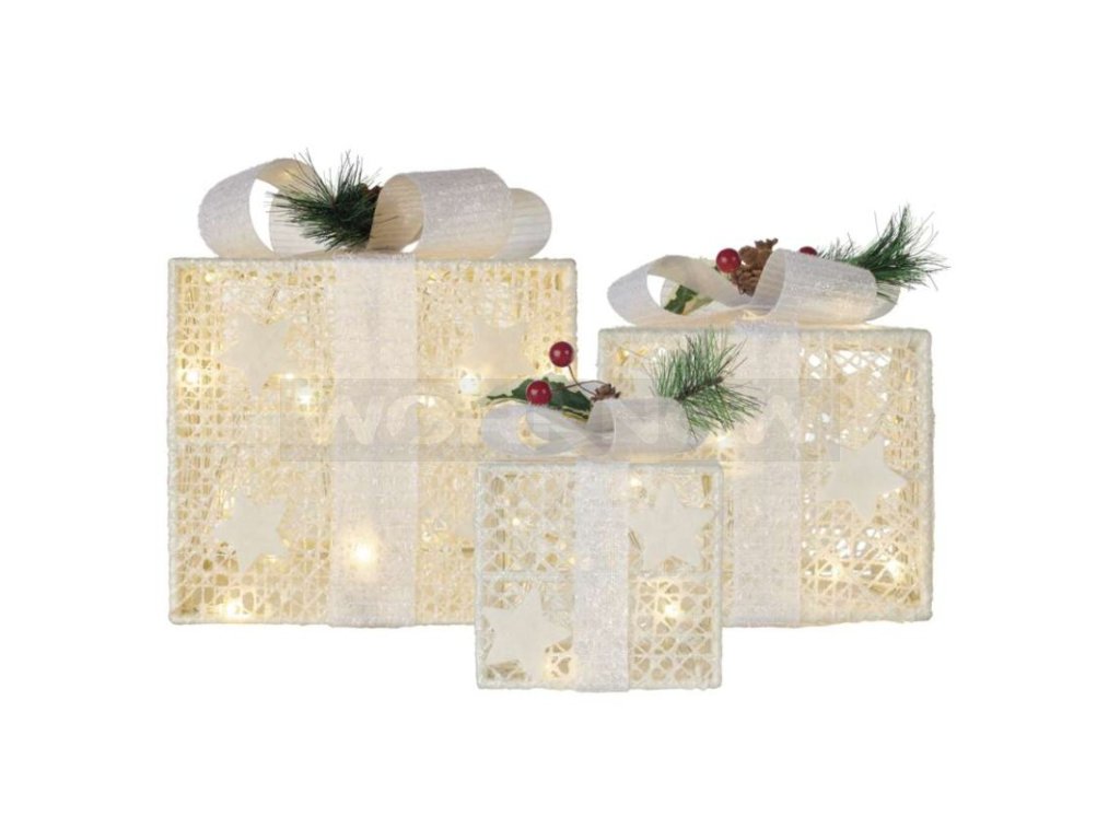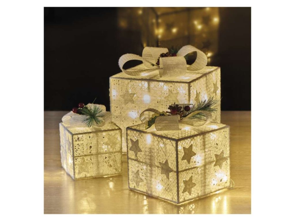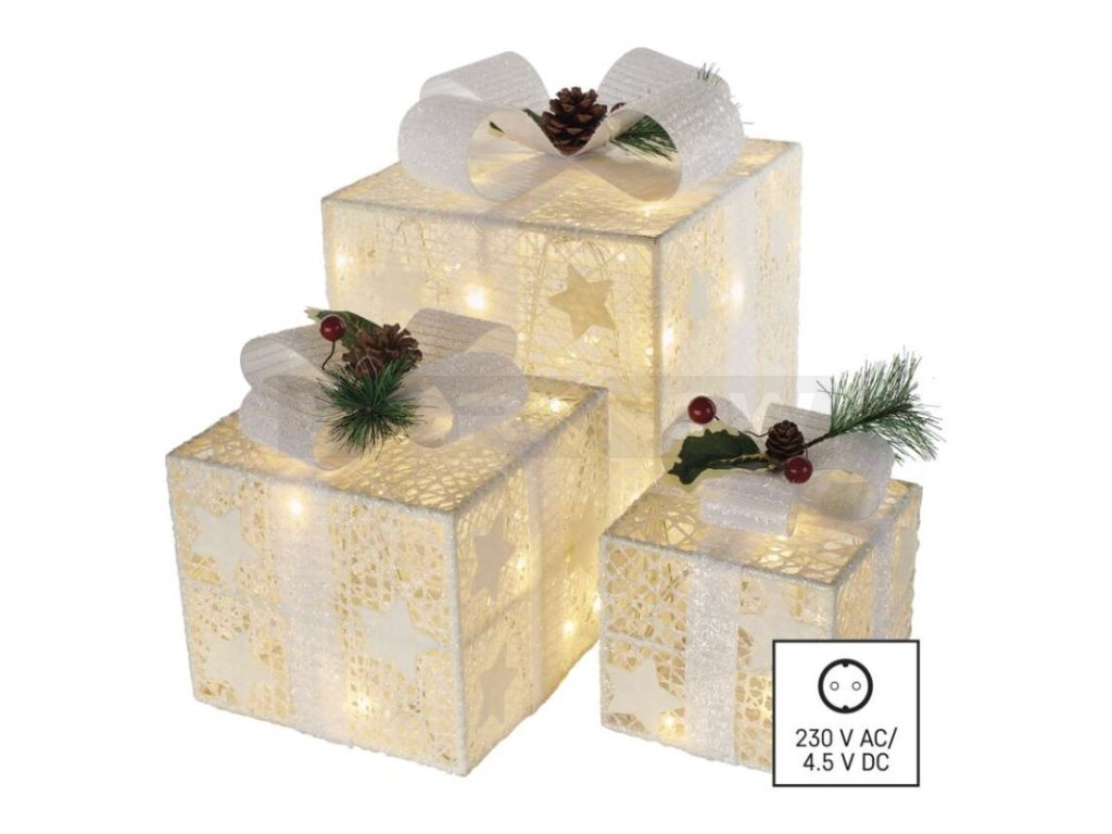 LED dárky s ozdobou, 3 velikosti, vnitřní, teplá bílá