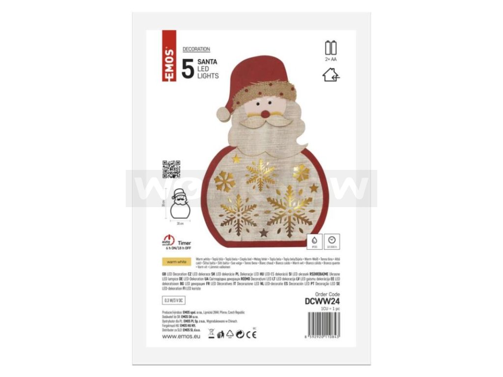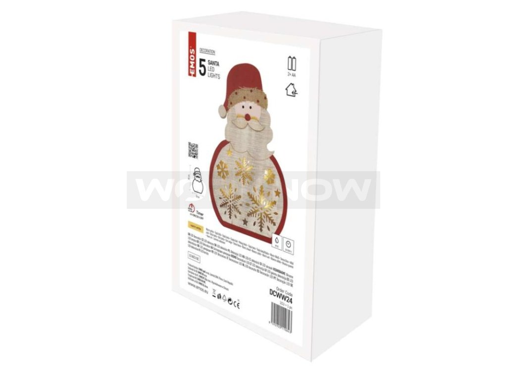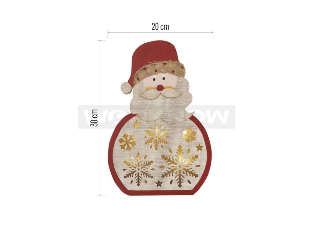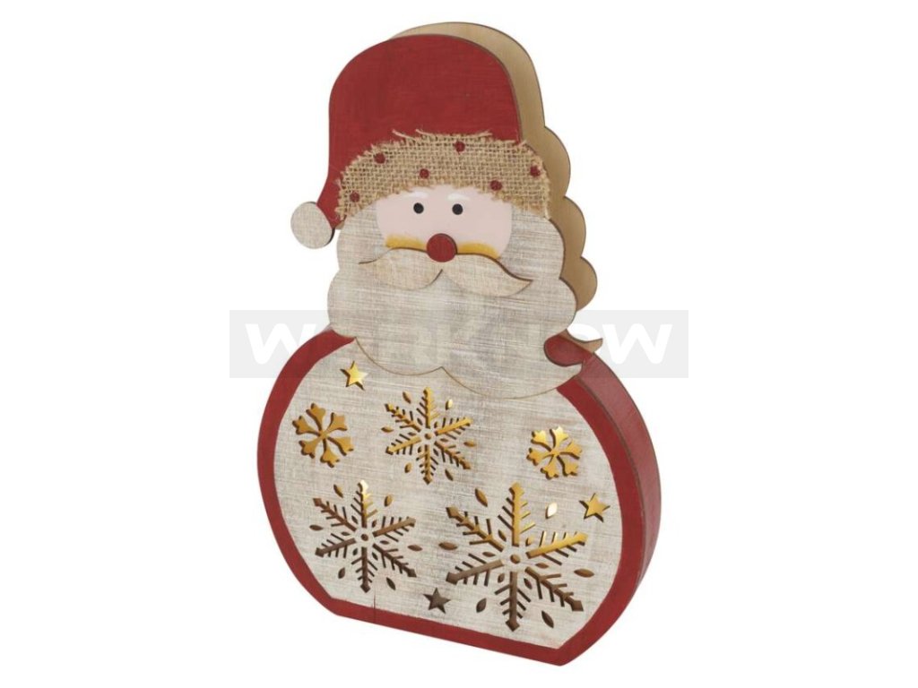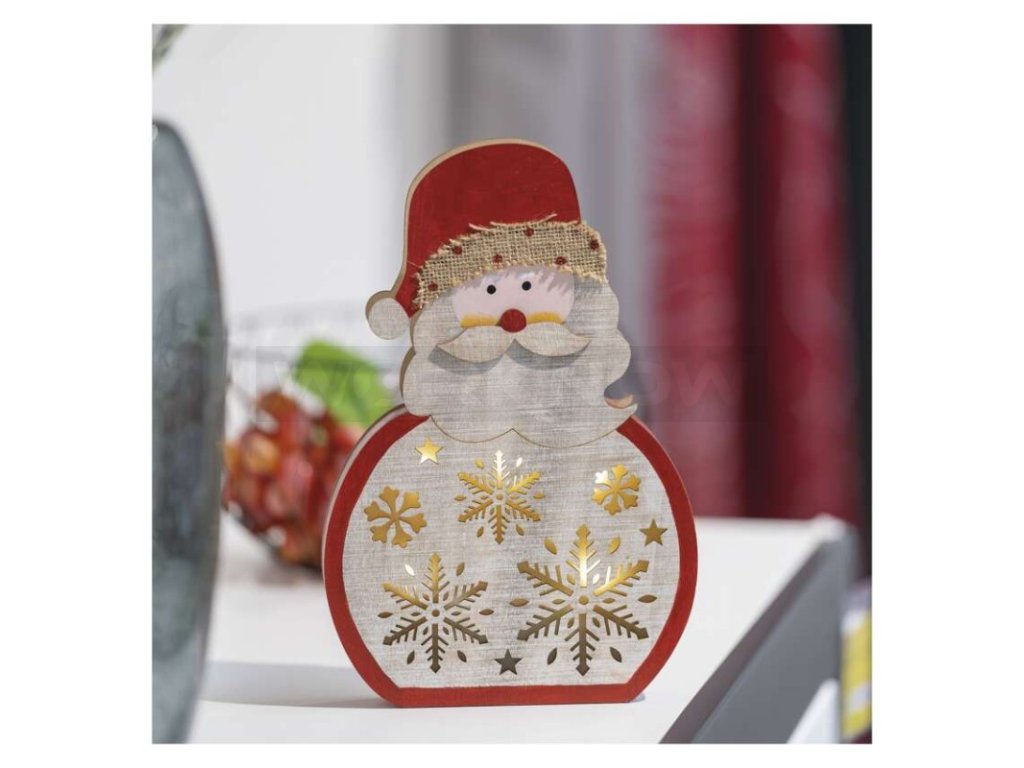 Dřevěné dekorace navozují atmosféru tradičních Vánoc charakteristických vůní perníčků, zvukem vánočních koled a nezaměnitelnou chutí bramborového salátu. Dřevěná dekorace Santa je vybavena příjemným teple bílým osvětlením. Díky napájení pomocí 2× AA baterií ji můžete umístit na libovolné místo ve vašem interiéru a skvěle se bude vyjímat zejména na okenním parapetu, komodě či televizním stolku.