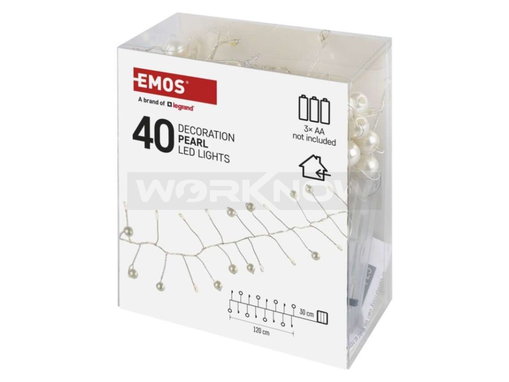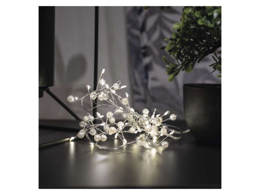 LED girlanda – perly, 1,2 m, 3x AA, vnitřní, teplá bílá, časovač