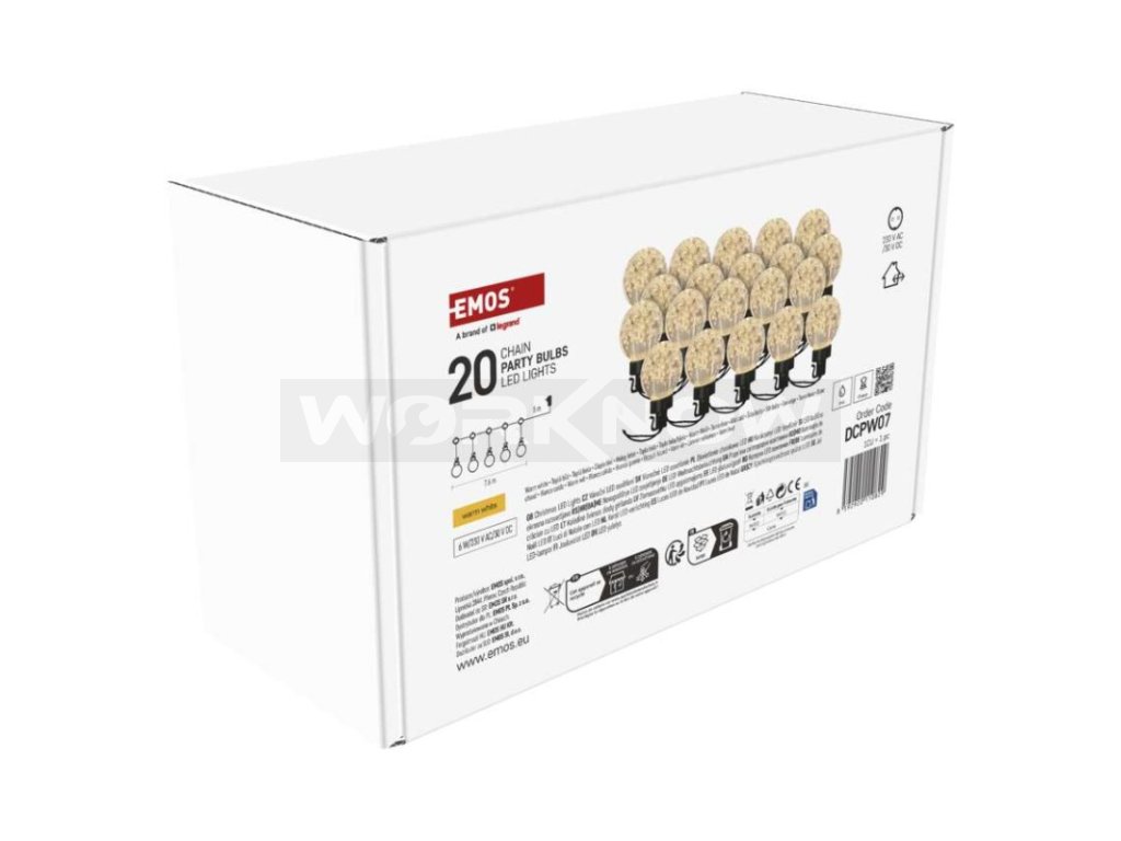 LED světelný řetěz – 20x párty žárovky, 7,6 m, venkovní i vnitřní, teplá bílá