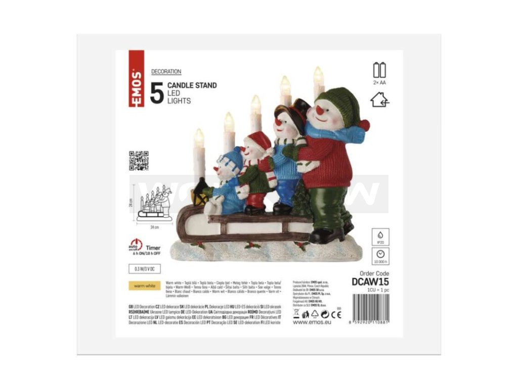 Vánoční LED svícen svým decentním světlem doladí útulnou atmosféru vašeho domova, ať už ho postavíte na sváteční stůl, parapet či poličku. Skvěle se bude vyjímat i v pokoji dětí, které si ho zamilují. Jeho teplá barva světla v kombinaci s neotřelým designem z něj dělají nevšední dekoraci vhodnou nejen pro vánoční večery. A co je důležité – nechtěných požárů se bát rozhodně nemusíte! Jako zdroj světla využívá místo tradičních svíček energeticky úsporné LED diody napájené z AA baterií.