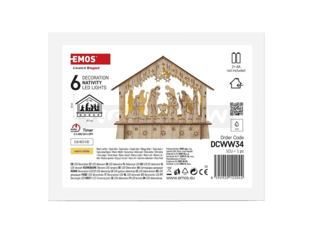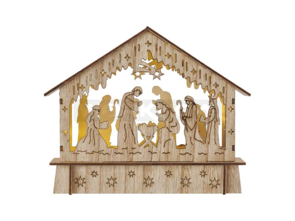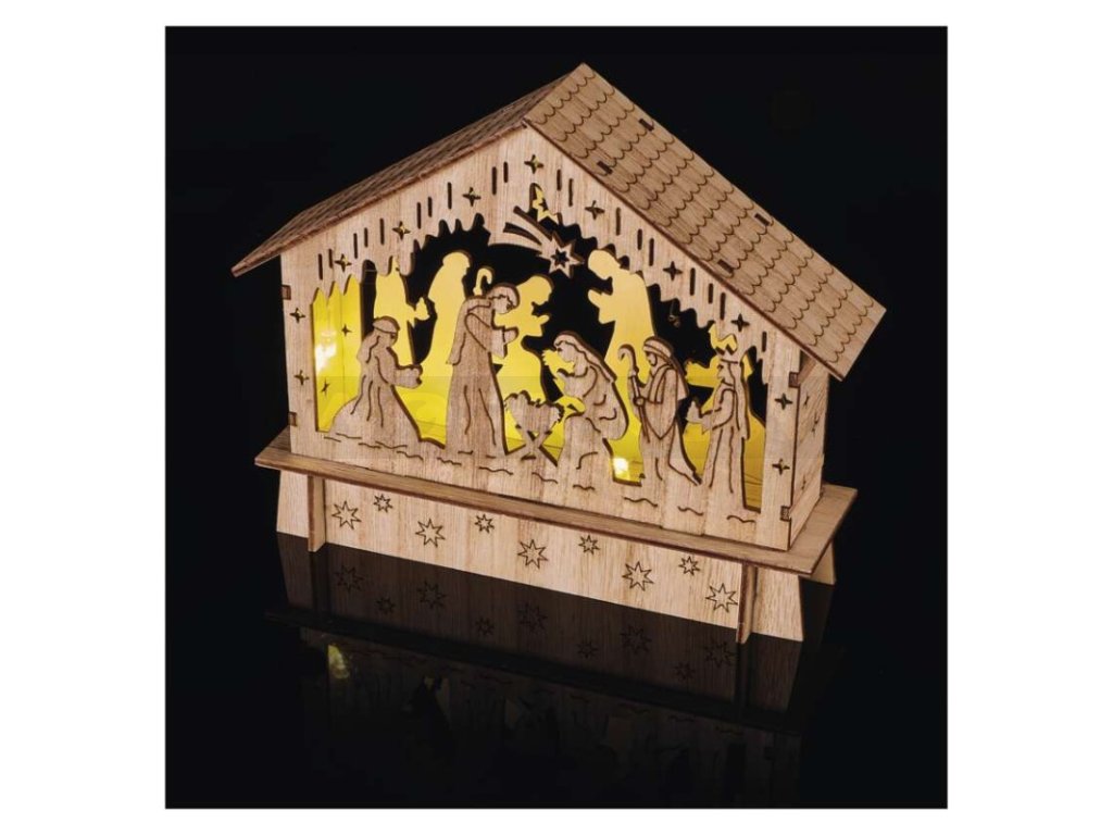 Atmosféru tradičních Vánoc, plnou vůní perníčků, zvuků vánočních koled a nezaměnitelné chuti bramborového salátu, lze vytvořit pomocí dřevěných dekorací. Vánoční betlém, vyrobený ze dřeva, je osvětlen teplým bílým světlem, které vytváří příjemnou atmosféru. Díky napájení pomocí 2× AA baterií si můžete tuto dekoraci umístit kamkoli ve vašem interiéru. Skvěle se hodí zejména na okenní parapet, komodu nebo televizní stůl.