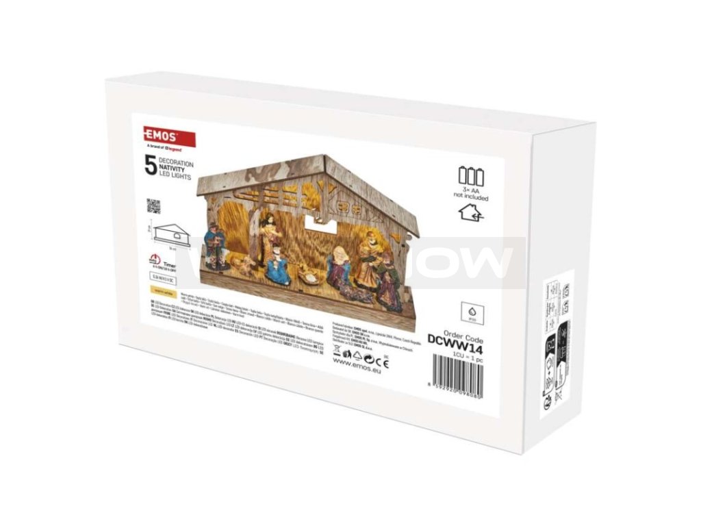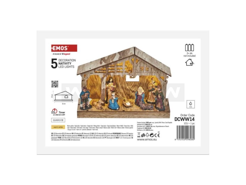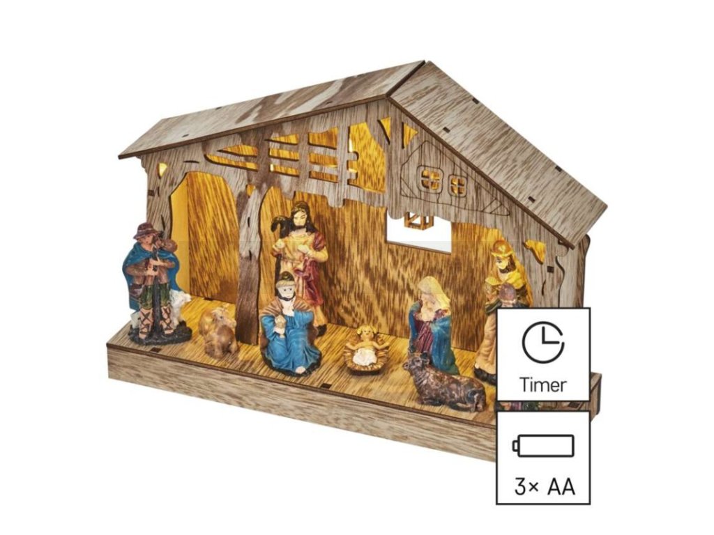 LED vánoční betlém dřevěný, 19 cm, 3x AA, vnitřní, teplá bílá, časovač DCWW14