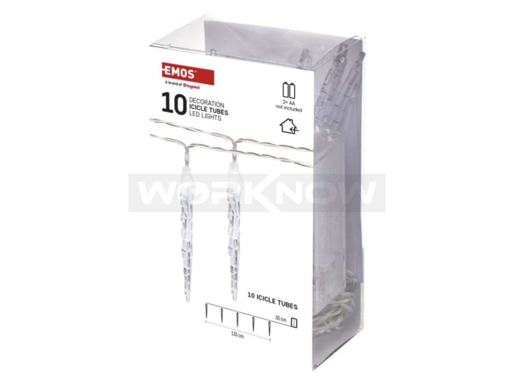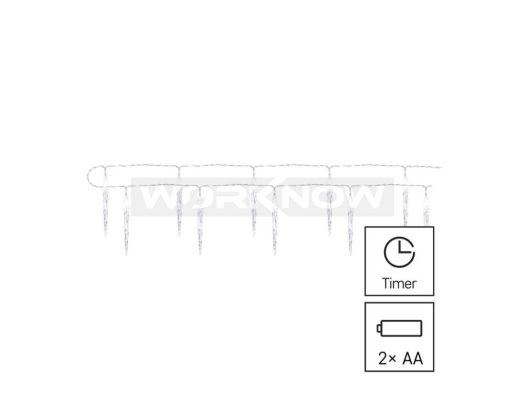LED vánoční girlanda – 10x rampouch, 1,35 m, 2x AA, vnitřní, studená bílá, časovač DCGC01