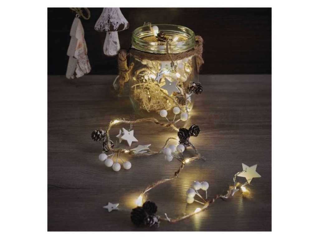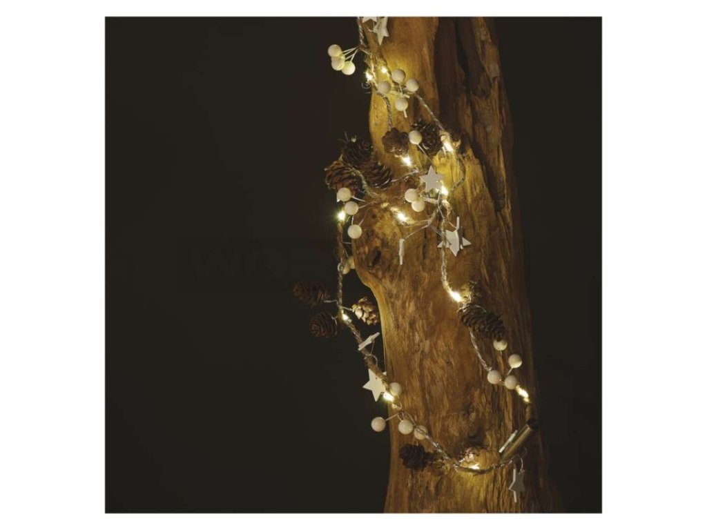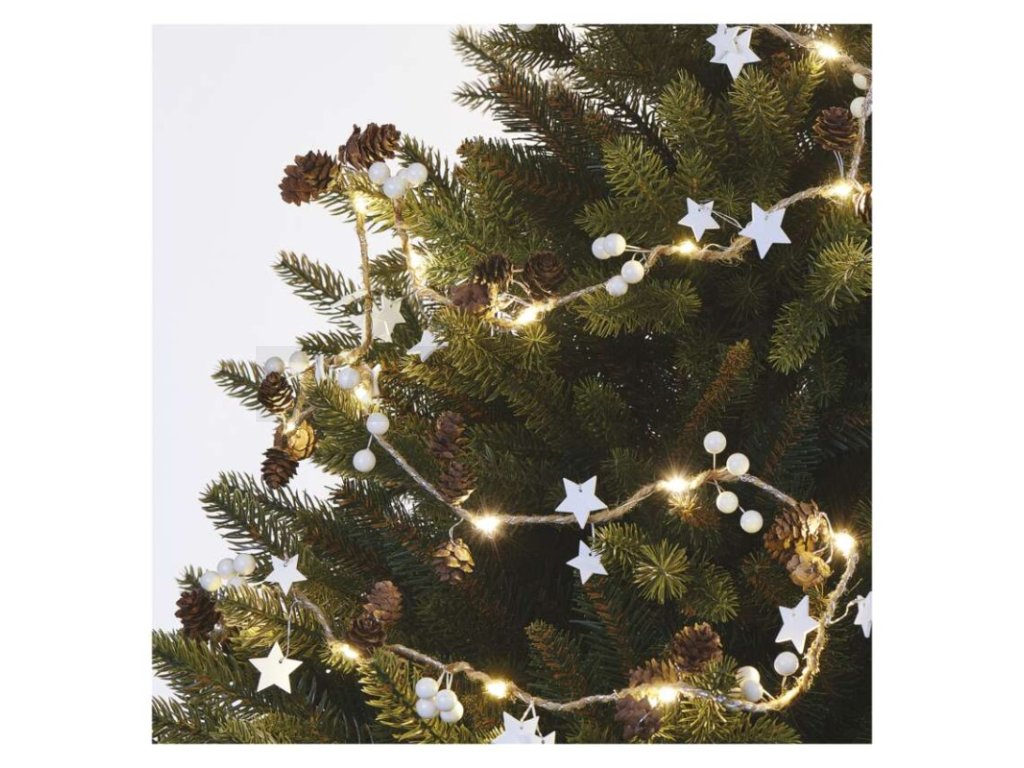 LED vánoční girlanda – šišky, 1,7 m, 2x AA, vnitřní, teplá bílá