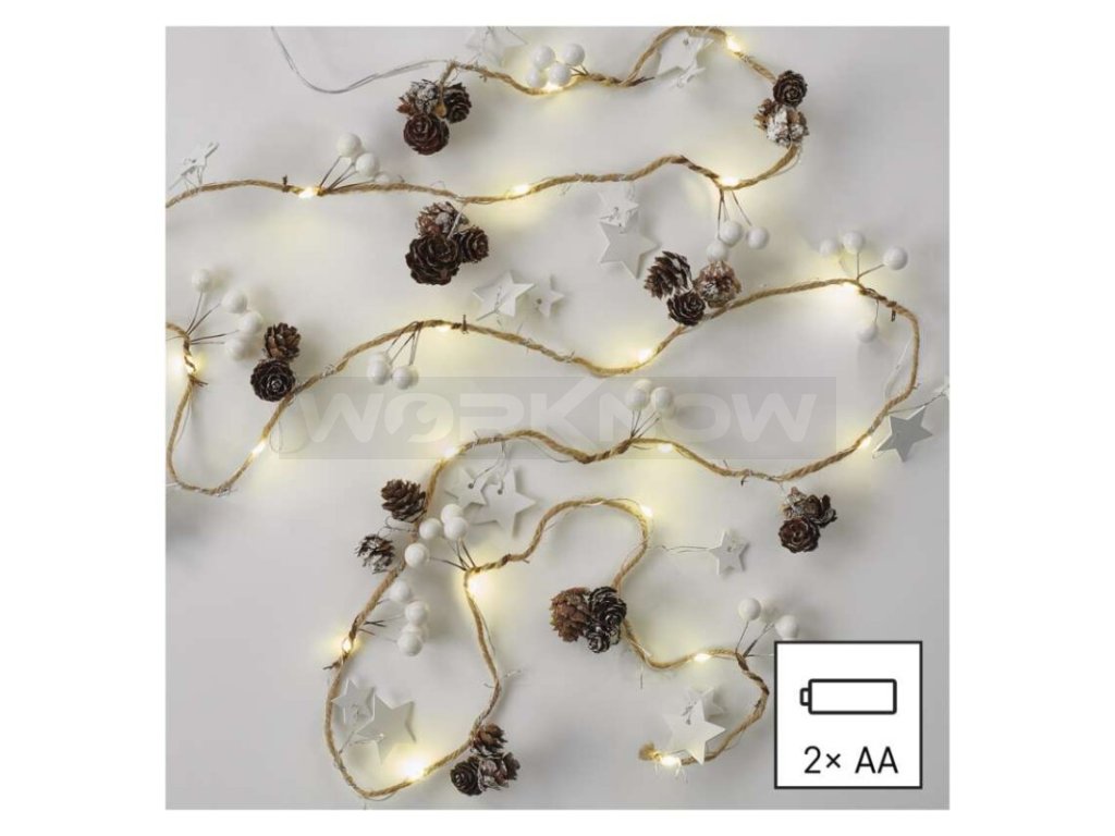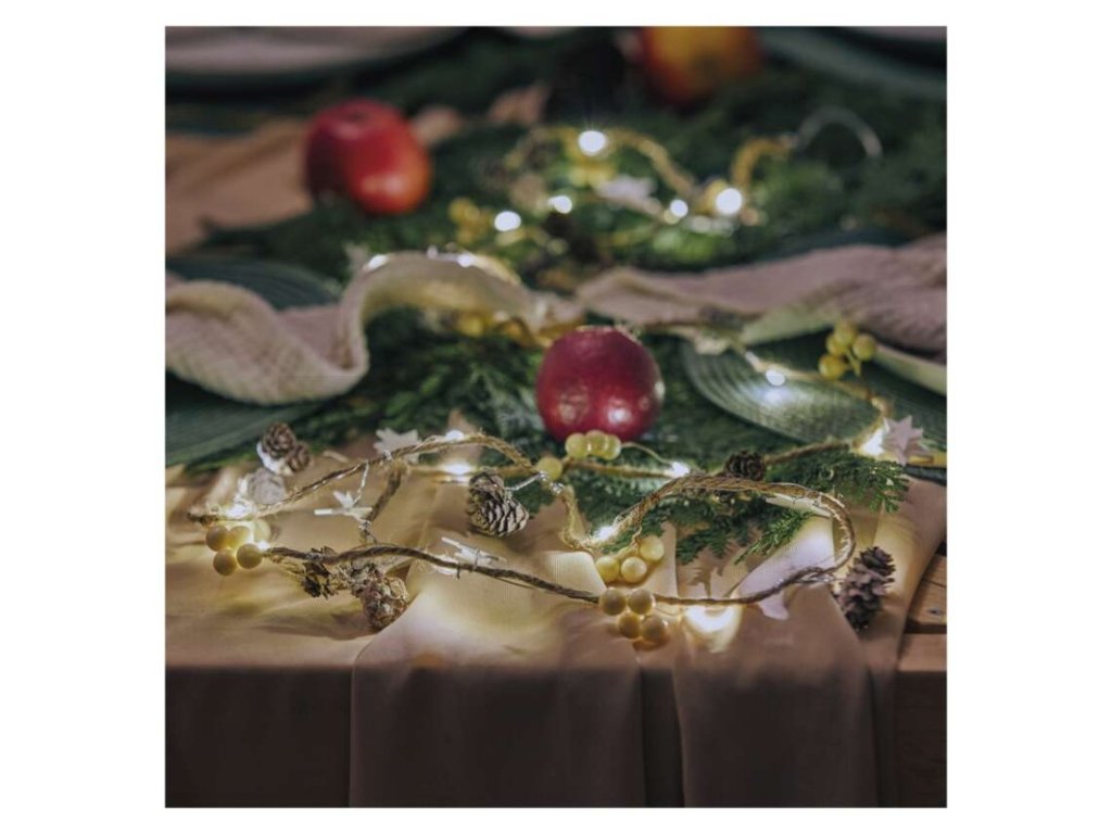 Chcete vánočně vyzdobit okna, zábradlí, slavnostně prostřený stůl nebo rozzářit vázy, adventní svícny a věnce? Pak právě pro vás máme vánoční svítící girlandu s šiškami, která je napájena AA bateriemi a hodí se do každého interiéru. Oceníte ji zejména v případech, kdy není žádoucí, aby byl celkový dojem z dekorace rušen přívodním kabelem nebo není dostupný zdroj elektrické energie. Své uplatnění nachází i při výzdobě dětských pokojíčků, kde odpadá starost o vaše nejdražší při manipulaci s klasickými zásuvkami. Díky napájení tužkovými bateriemi pro ni není žádný problém ani výzdoba stanu, obytného vozu či karavanu při pobytu v přírodě.