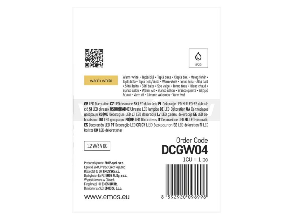 | Výrobná spoločnosť : | EMOS spol. s r.o. |