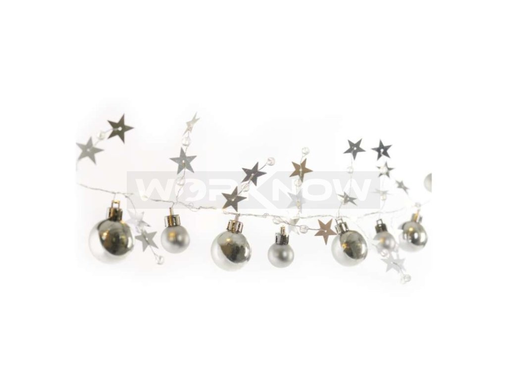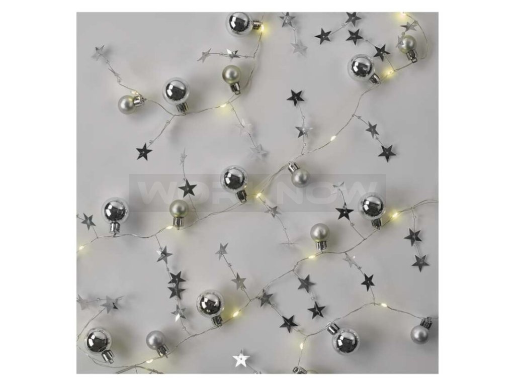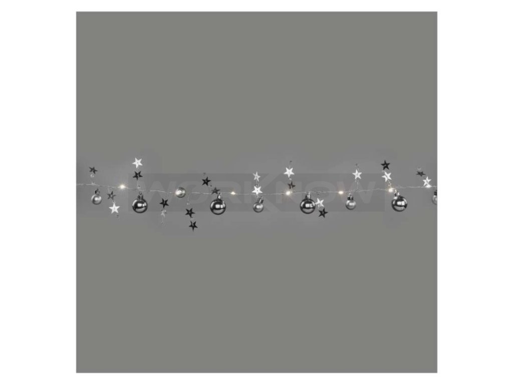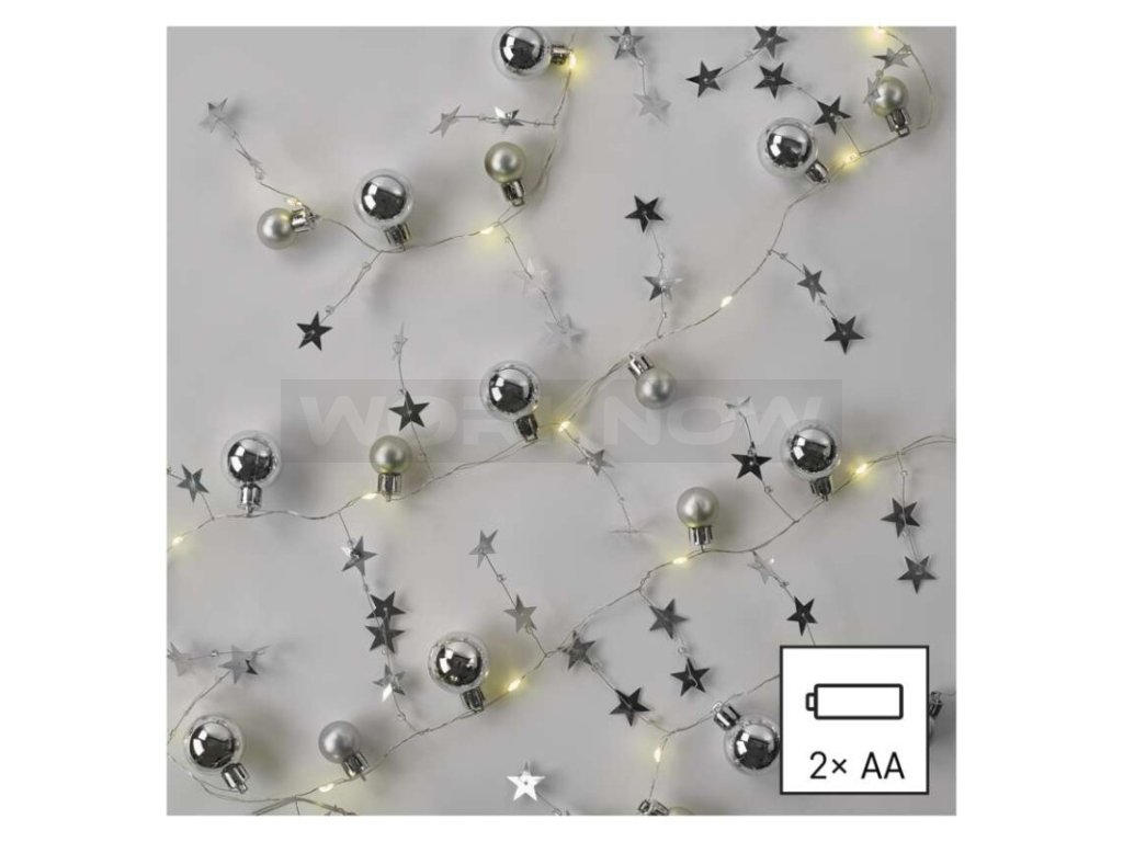 LED vánoční girlanda, stříbrné koule s hvězdami 1,9 m, 2x AA, vnitřní, teplá bílá, časovač