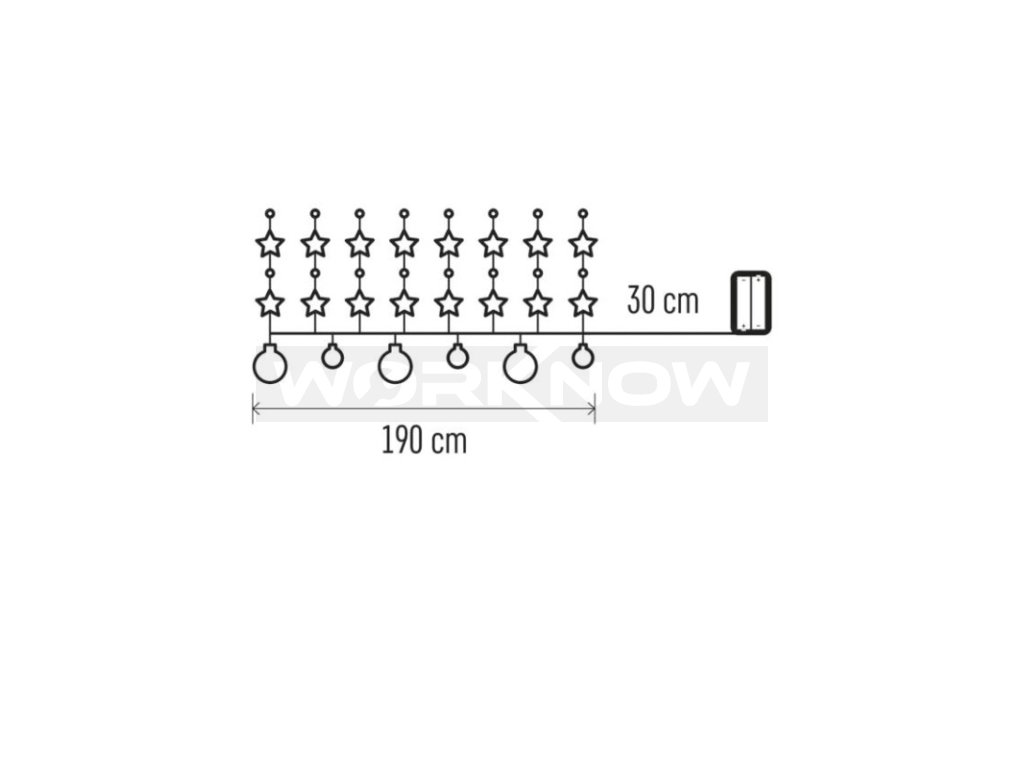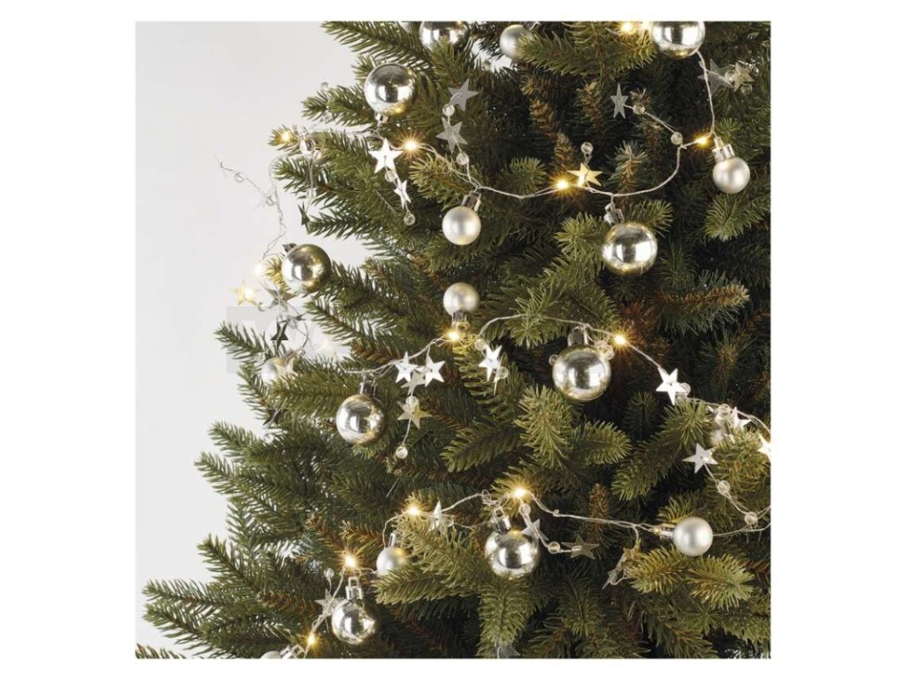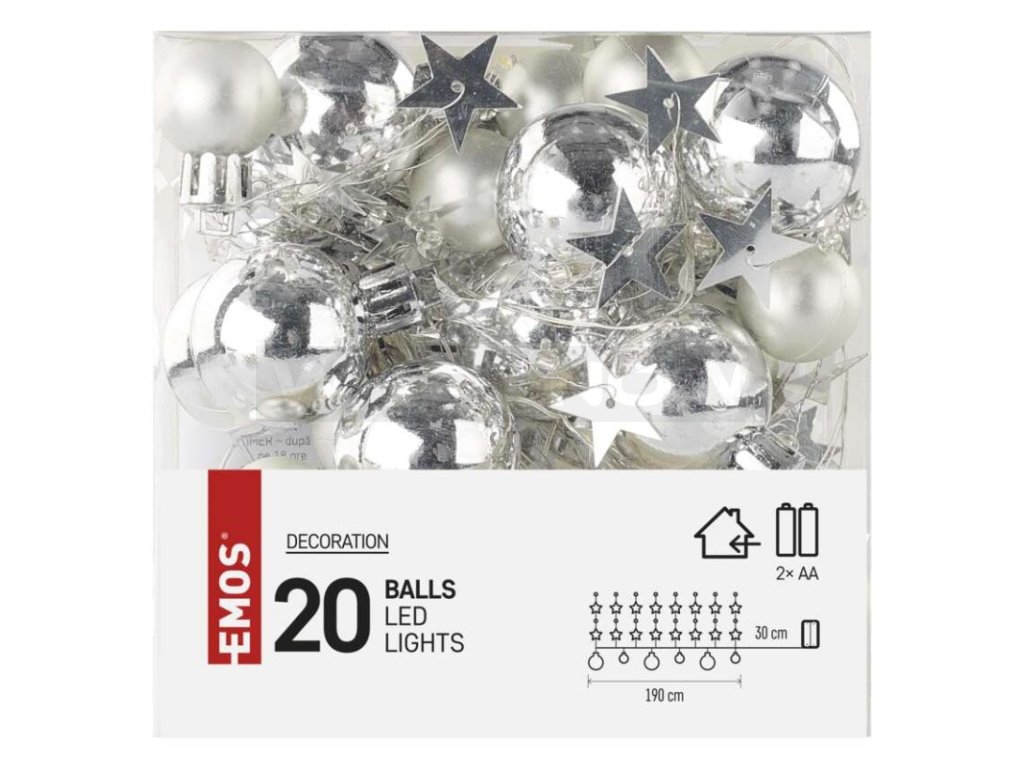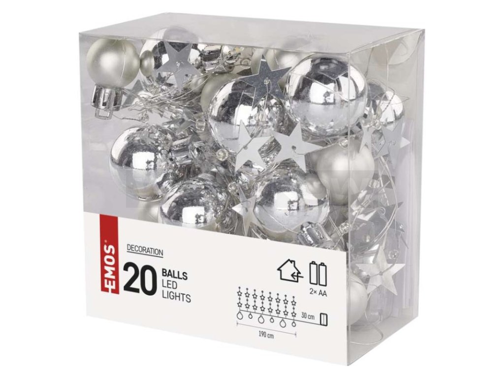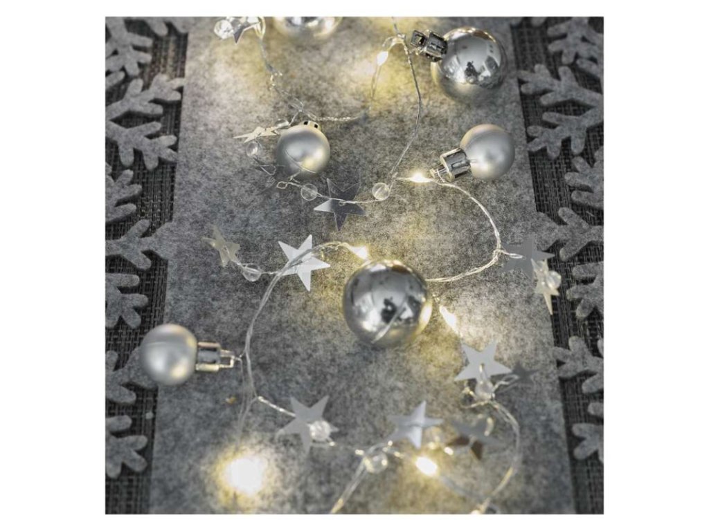 LED vánoční girlanda, stříbrné koule s hvězdami 1,9 m, 2x AA, vnitřní, teplá bílá, časovač