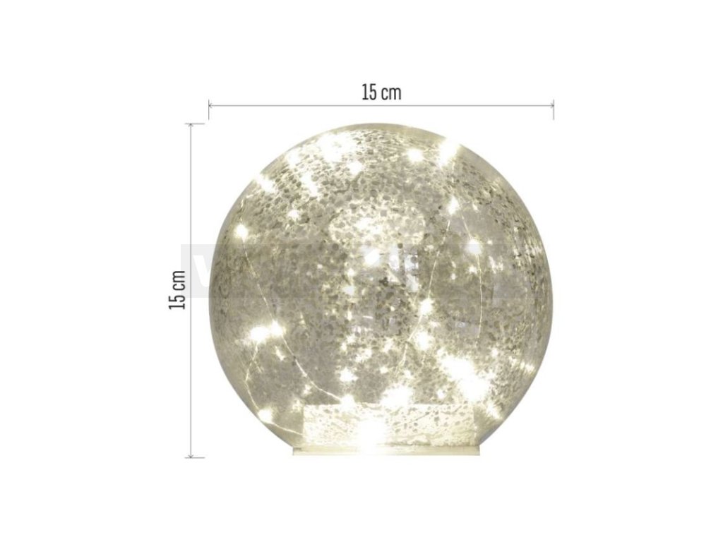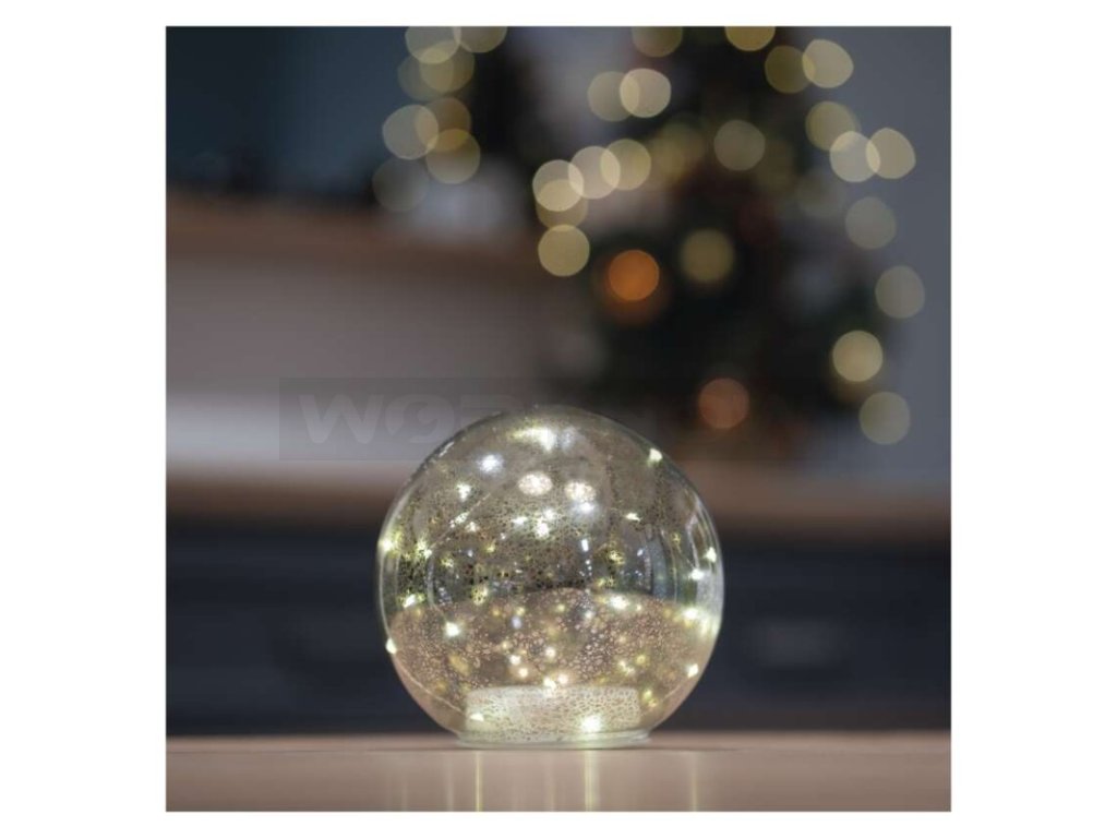 LED vánoční skleněná koule – zlatá, 15 cm, 3x AA, vnitřní, teplá bílá, časovač