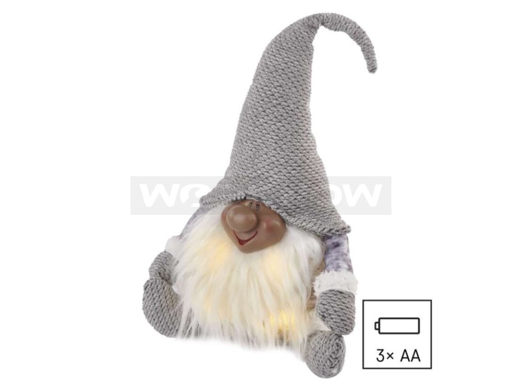LED vánoční skřítek, 35 cm, 3x AA, vnitřní, teplá bílá