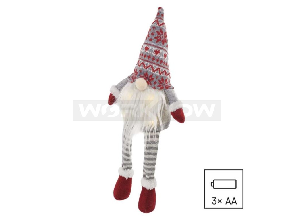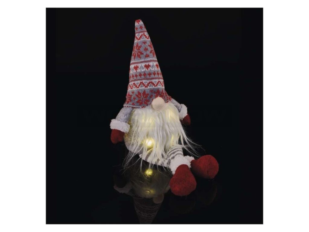 LED vánoční skřítek sedící, 27 cm, 3x AA, vnitřní, teplá bílá