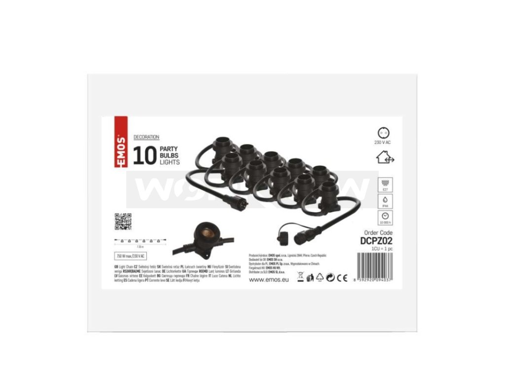Spojovací světelný řetěz na 10 žárovek E27 bez přívodu, 7,35 m, venkovní i vnitřní DCPZ02