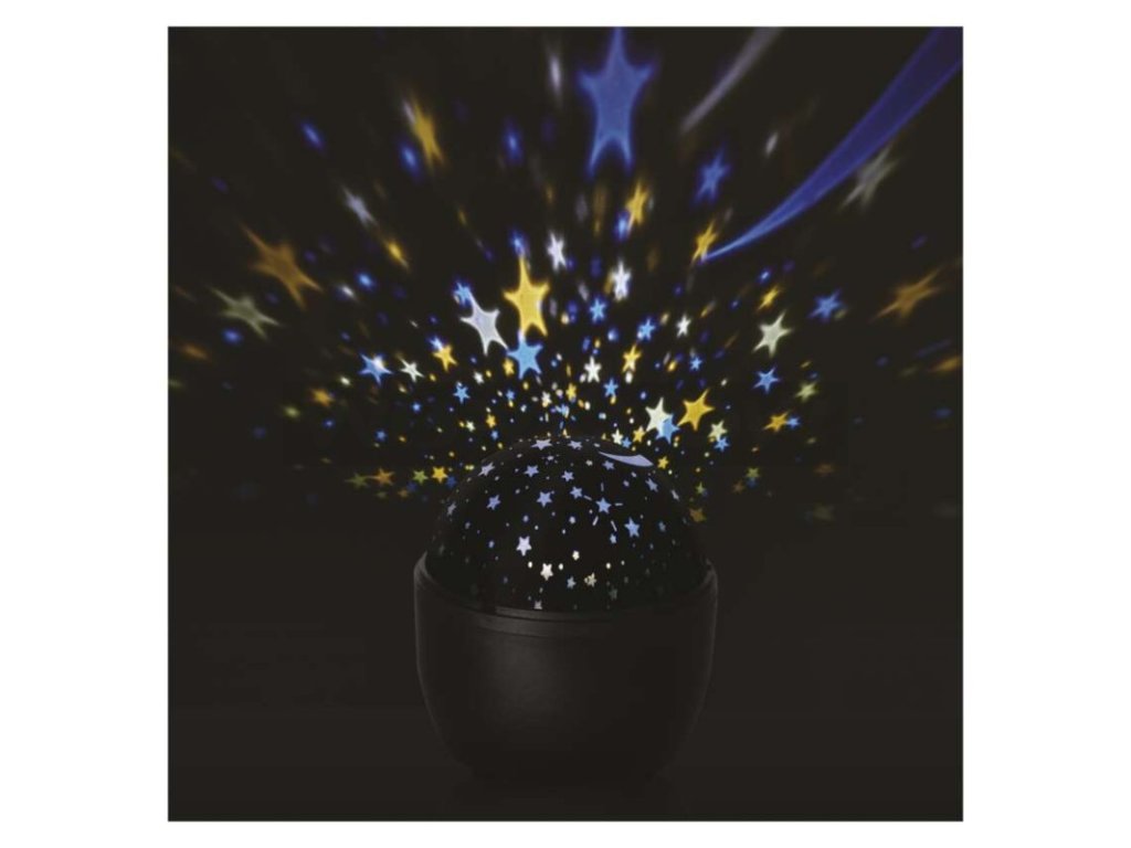 Existuje nějaká dekorace, kterou budou vaše děti doslova zbožňovat? Určitě to bude hravý projektor určený pro použití v interiéru, který na stěnu, strop nebo nábytek promítá pohybující se motivy hvězdiček studené a teplé bílé barvy. Projektor je napájen AA bateriemi nebo pomocí USB adaptéru a jeho použití nejen v dětském pokoji je tak zcela bezpečné. Dopřejte svým dětem bezstarostné usínání při pohledu na uklidňující hvězdnou oblohu.