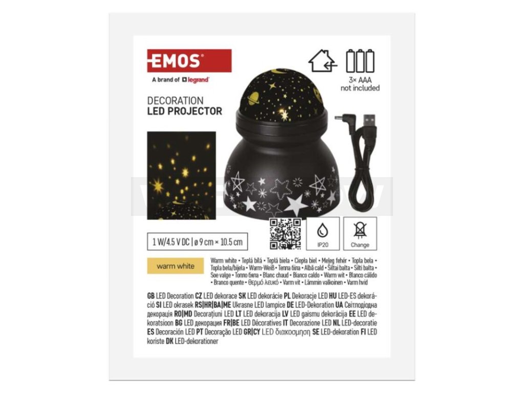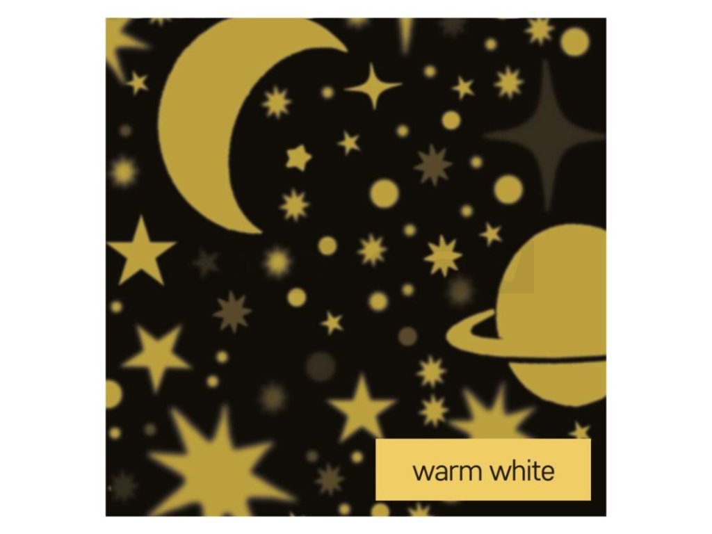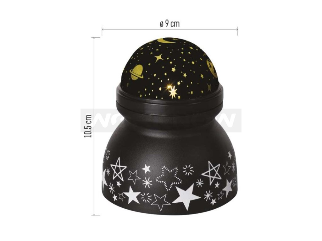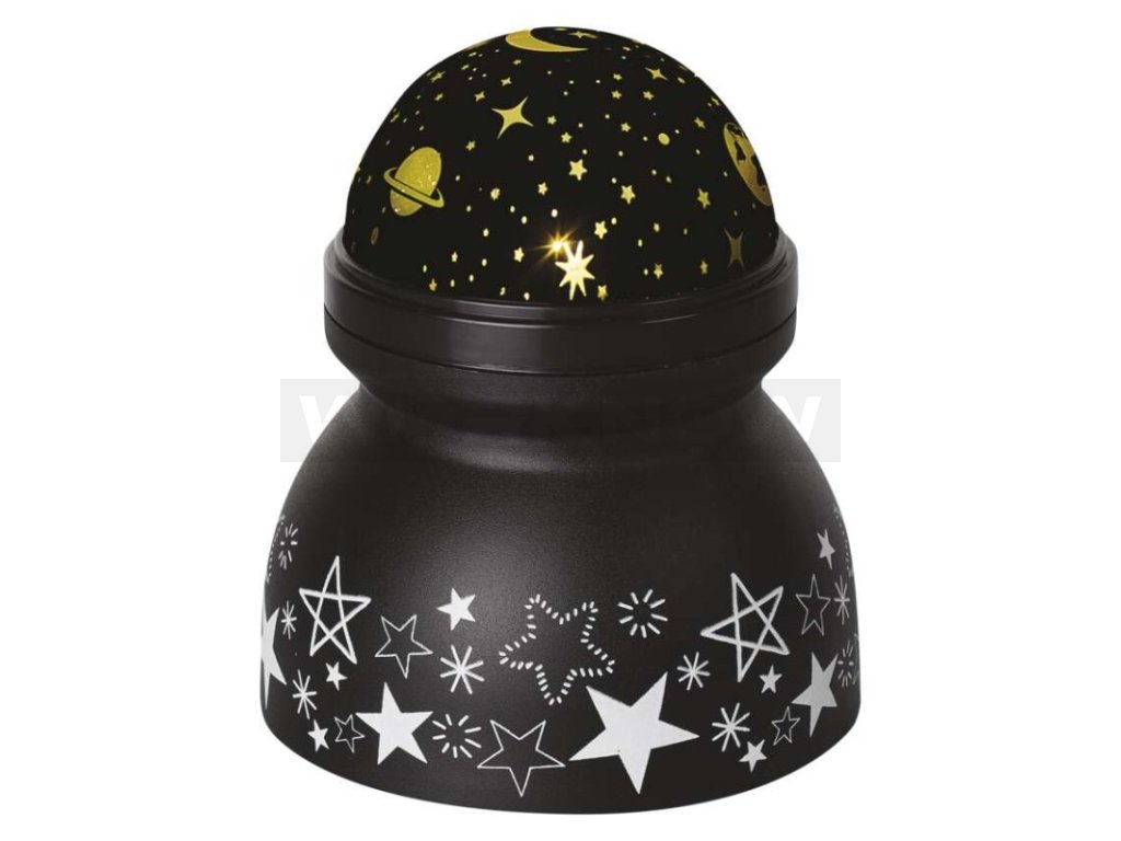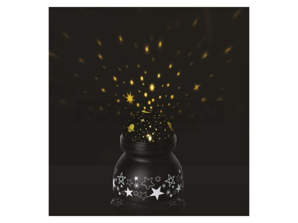 Existuje nějaká dekorace, kterou budou vaše děti doslova zbožňovat? Určitě to bude hravý projektor určený pro použití v interiéru, který na stěnu, strop nebo nábytek promítá pohybující se motivy hvězdiček a planet v teplé bílé barvě. Projektor je napájen AAA bateriemi nebo pomocí USB adaptéru a jeho použití nejen v dětském pokoji je tak zcela bezpečné. Dopřejte svým dětem bezstarostné usínání při pohledu na uklidňující hvězdnou oblohu.