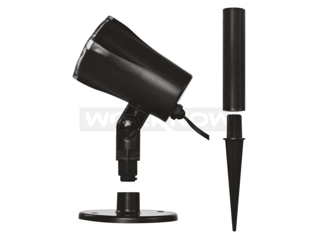 Umístění projektoru na zahradě či v interiéru je díky dlouhému 3 m přívodnímu kabelu dílem okamžiku. Součástí balení je i praktický stojánek pro postavení projektoru na tvrdý podklad. Další možností instalace je využití dodávaného trnu, který lze jednoduše zapíchnout do trávníku nebo květináče.
