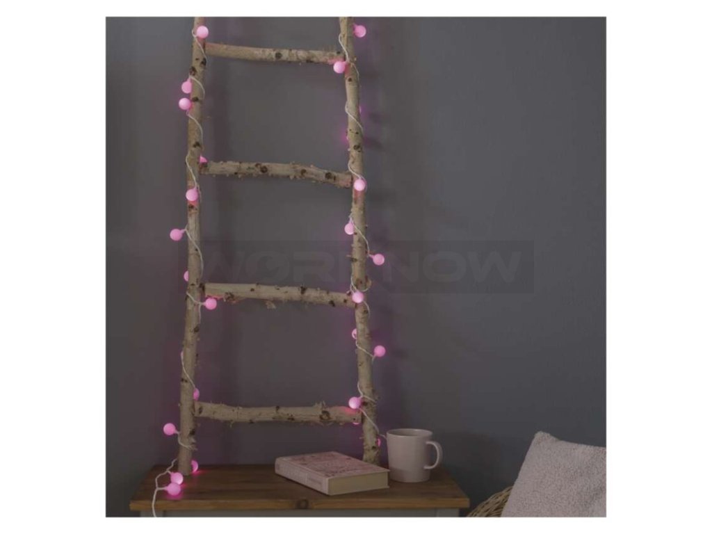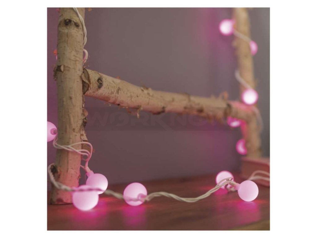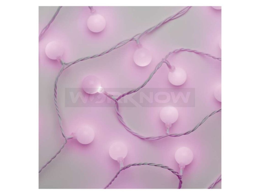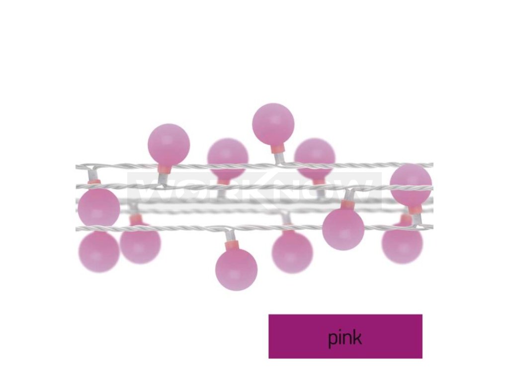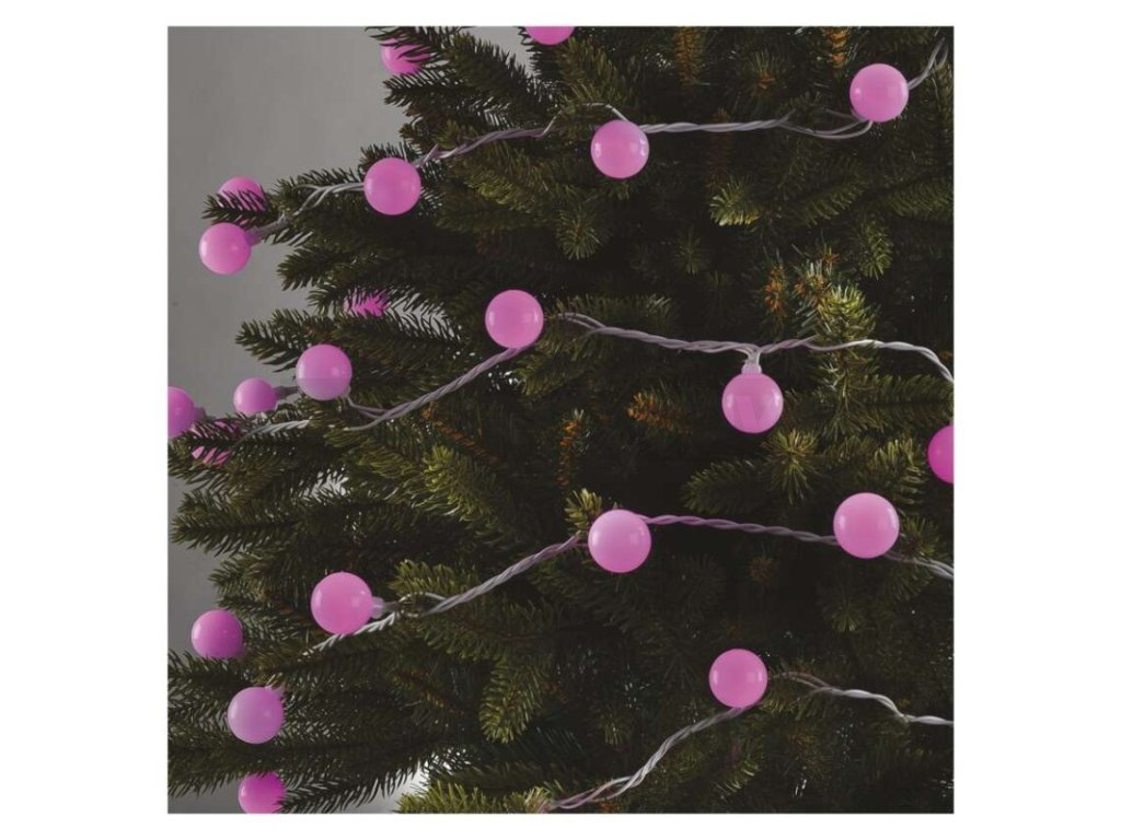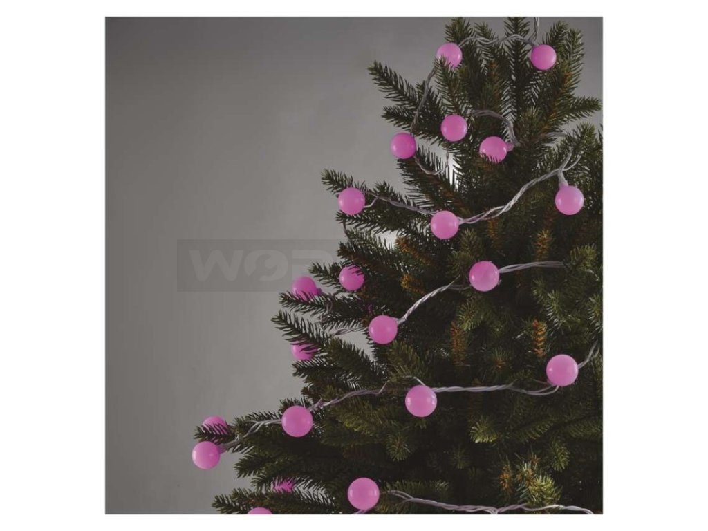 LED světelný cherry řetěz – kuličky 2,5 cm, 4 m, venkovní i vnitřní, růžová, časovač