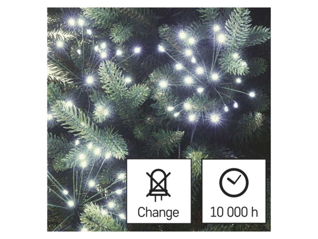 LED světelný řetěz – svítící trsy, nano, 8 m, vnitřní, studená bílá, časovač D3AC10