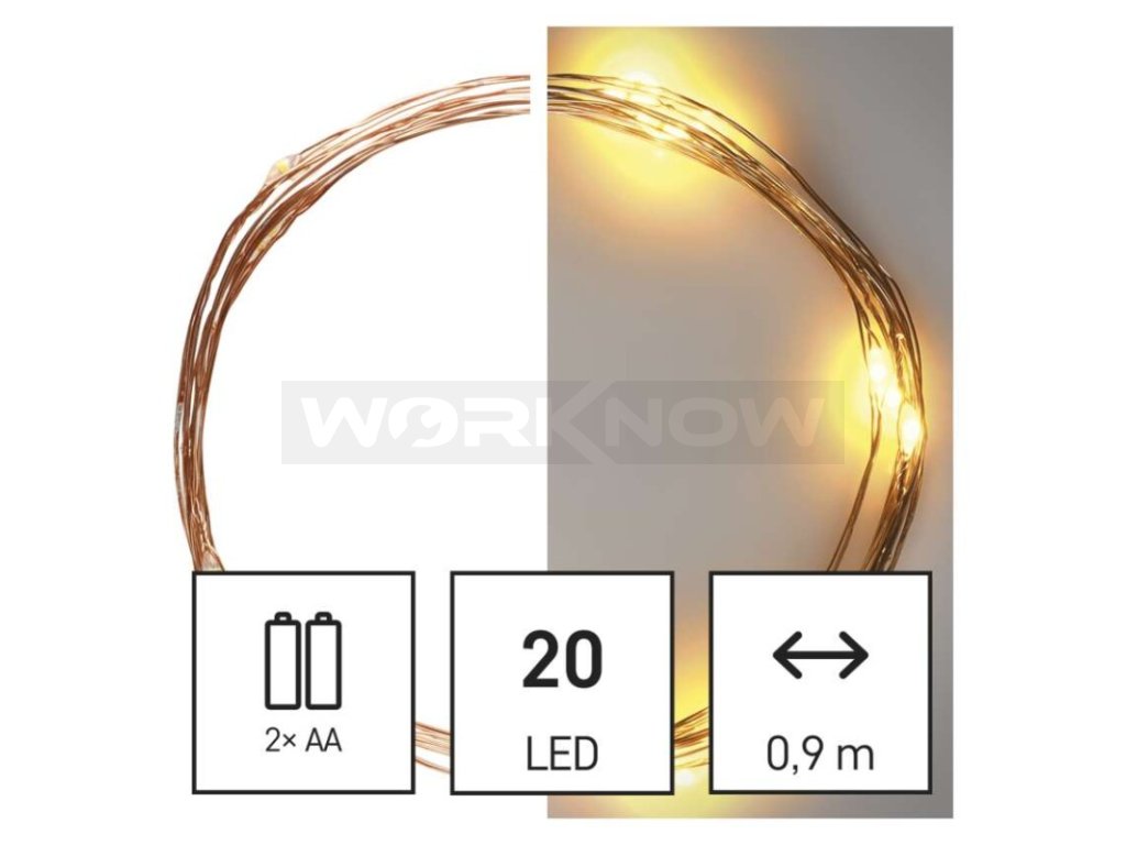 LED vánoční nano řetěz, 1,9 m, 2x AA, vnitřní, teplá bílá, časovač