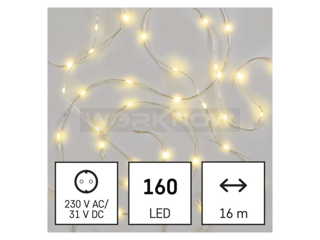 LED vánoční nano řetěz, 16 m, venkovní i vnitřní, teplá bílá, časovač