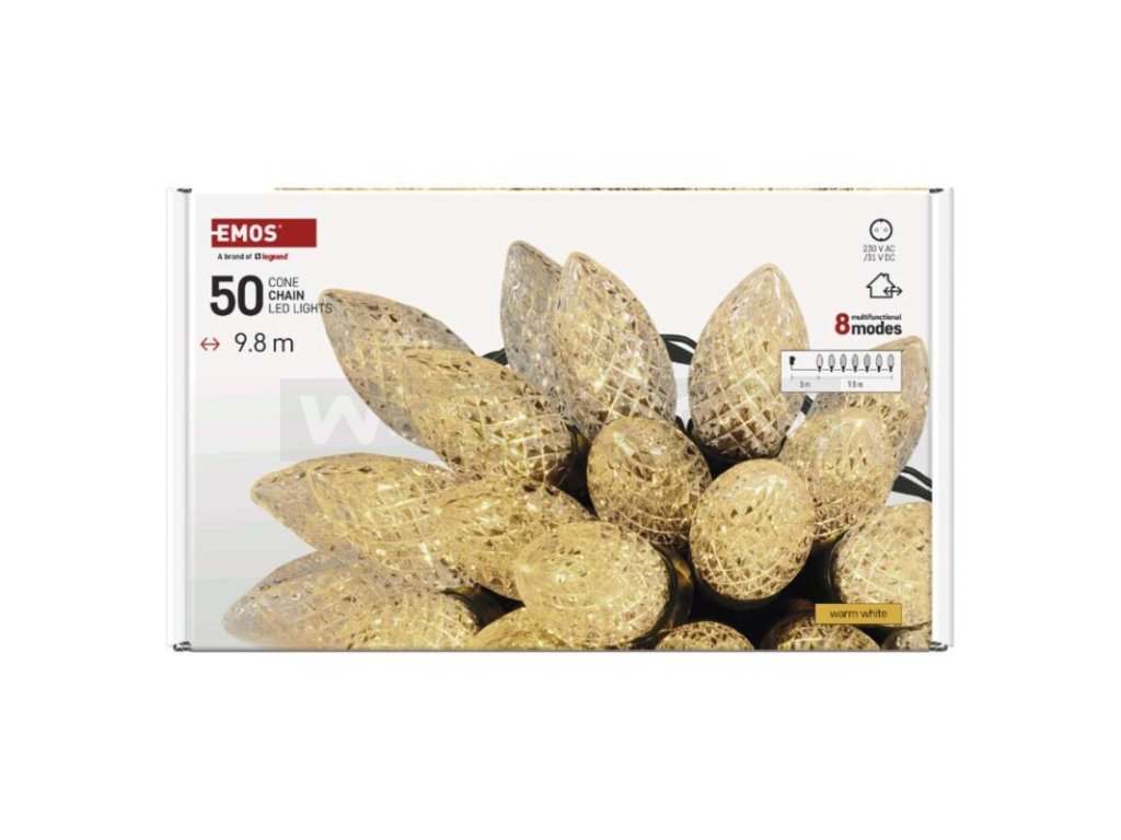 Pro rozsvícení nejen vánočního stromečku nabízíme pod značkou EMOS nepřeberné množství LED řetězů, které vynikají nízkou spotřebou elektrické energie a dlouhou životností. Vybírat můžete z řetězů určených výhradně do interiéru (IP20), exteriéru (IP44) nebo řetězů na baterie, které jsou ideální k dekorování míst bez přístupu k zásuvce. K dispozici jsou čtyři řady LED světelných řetězů, které se liší velikostí LED diody a jejím tvarem – NANO – CLASSIC – CHERRY – TRADITIONAL. Rozhodujícím kritériem při volbě správného řetězu jsou jeho délka, počet LED diod a barva světla.