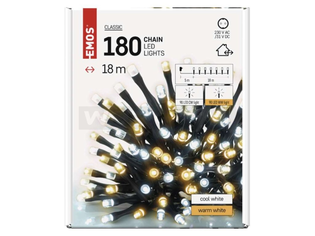 Pro rozsvícení nejen vánočního stromečku nabízíme pod značkou EMOS nepřeberné množství LED řetězů, které vynikají nízkou spotřebou elektrické energie a dlouhou životností. Vybírat můžete z řetězů určených výhradně do interiéru (IP20), exteriéru (IP44) nebo řetězů na baterie, které jsou ideální k dekorování míst bez přístupu k zásuvce. K dispozici jsou čtyři řady LED světelných řetězů, které se liší velikostí LED diody a jejím tvarem – NANO – CLASSIC – CHERRY – TRADITIONAL. Rozhodujícím kritériem při volbě správného řetězu jsou jeho délka, počet LED diod a barva světla.